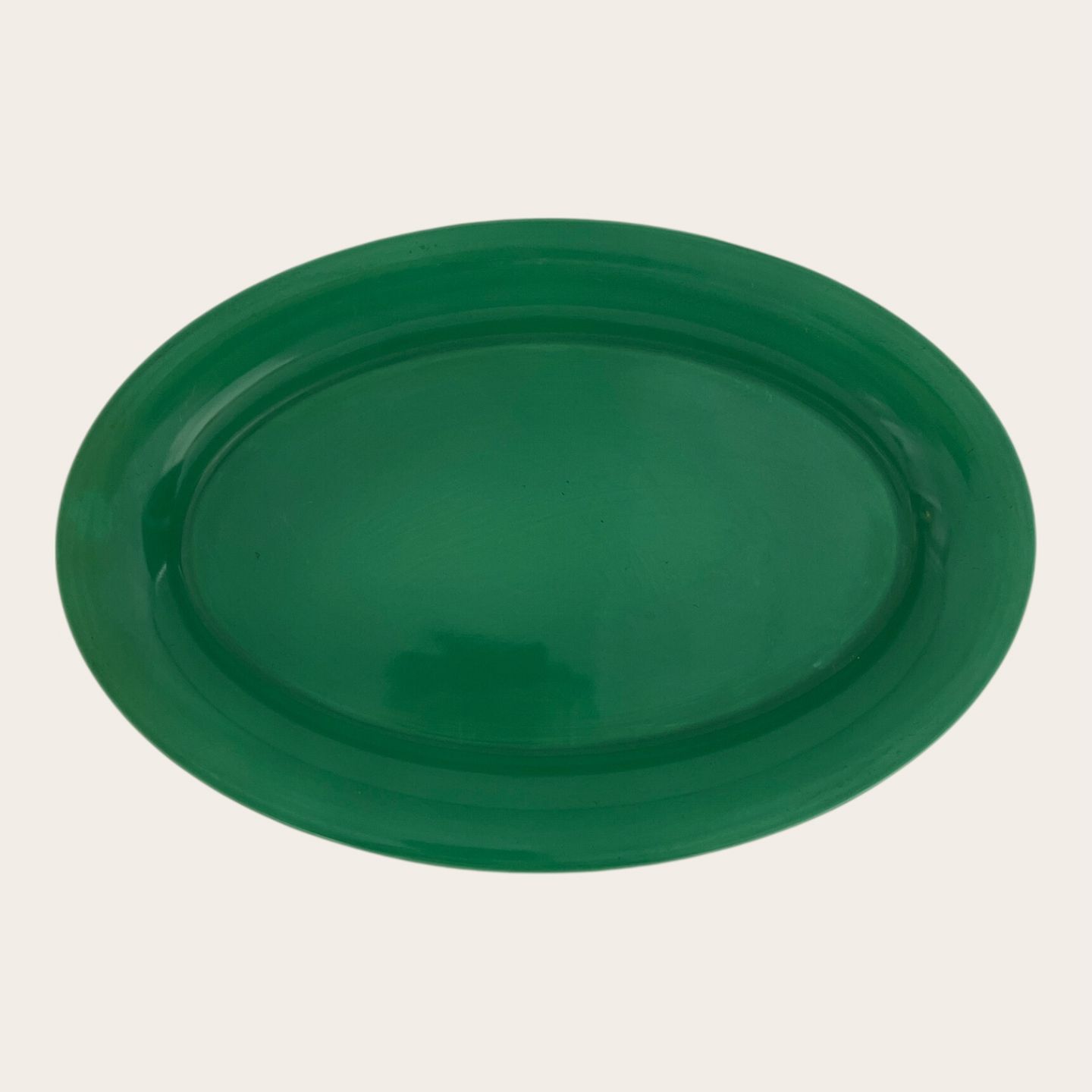 Royal Copenhagen, Aluminia, Plate, Green #624, 1st sorting, 33.5cm long, 22cm, Design Ursula Munch Petersen *Good condition with light signs of wear*