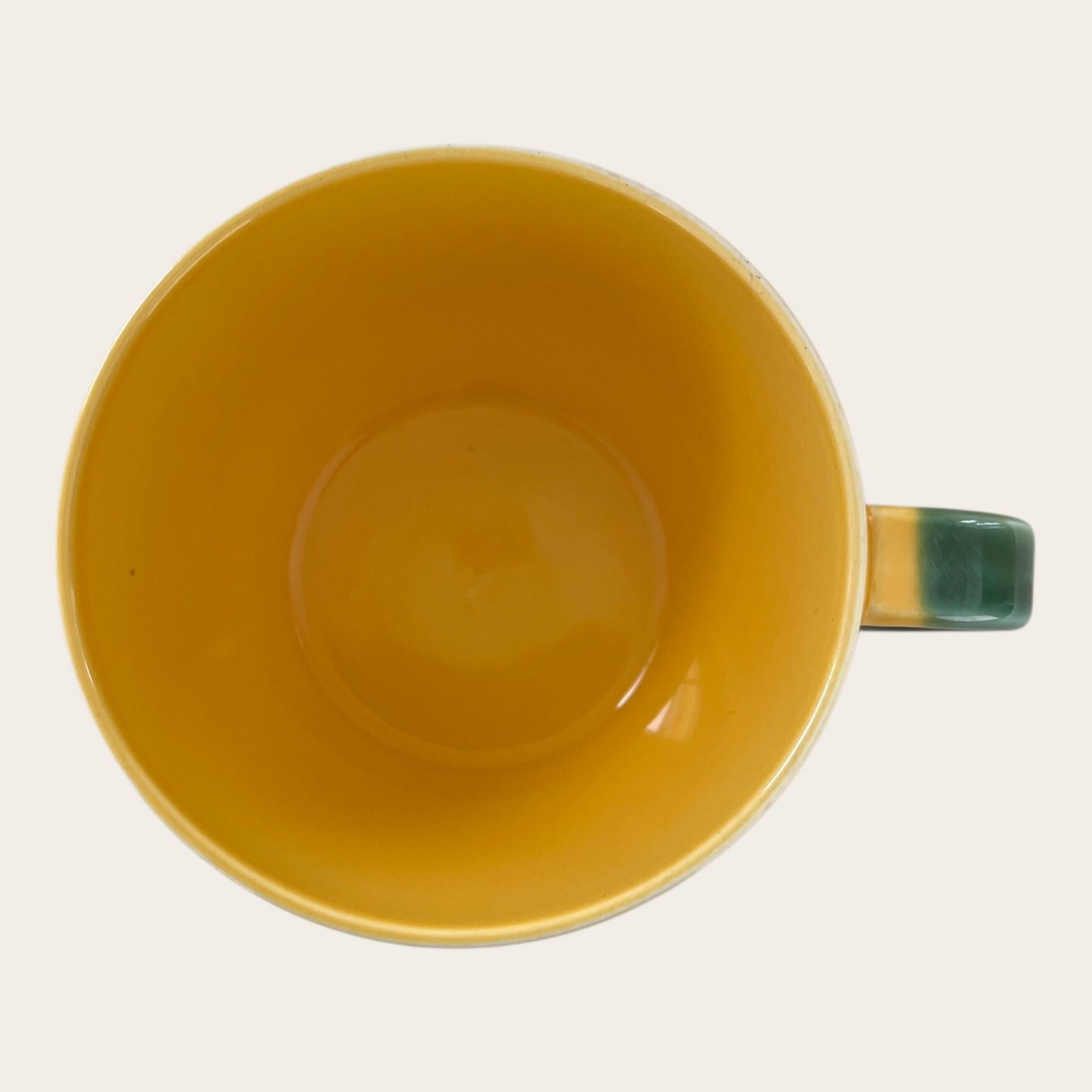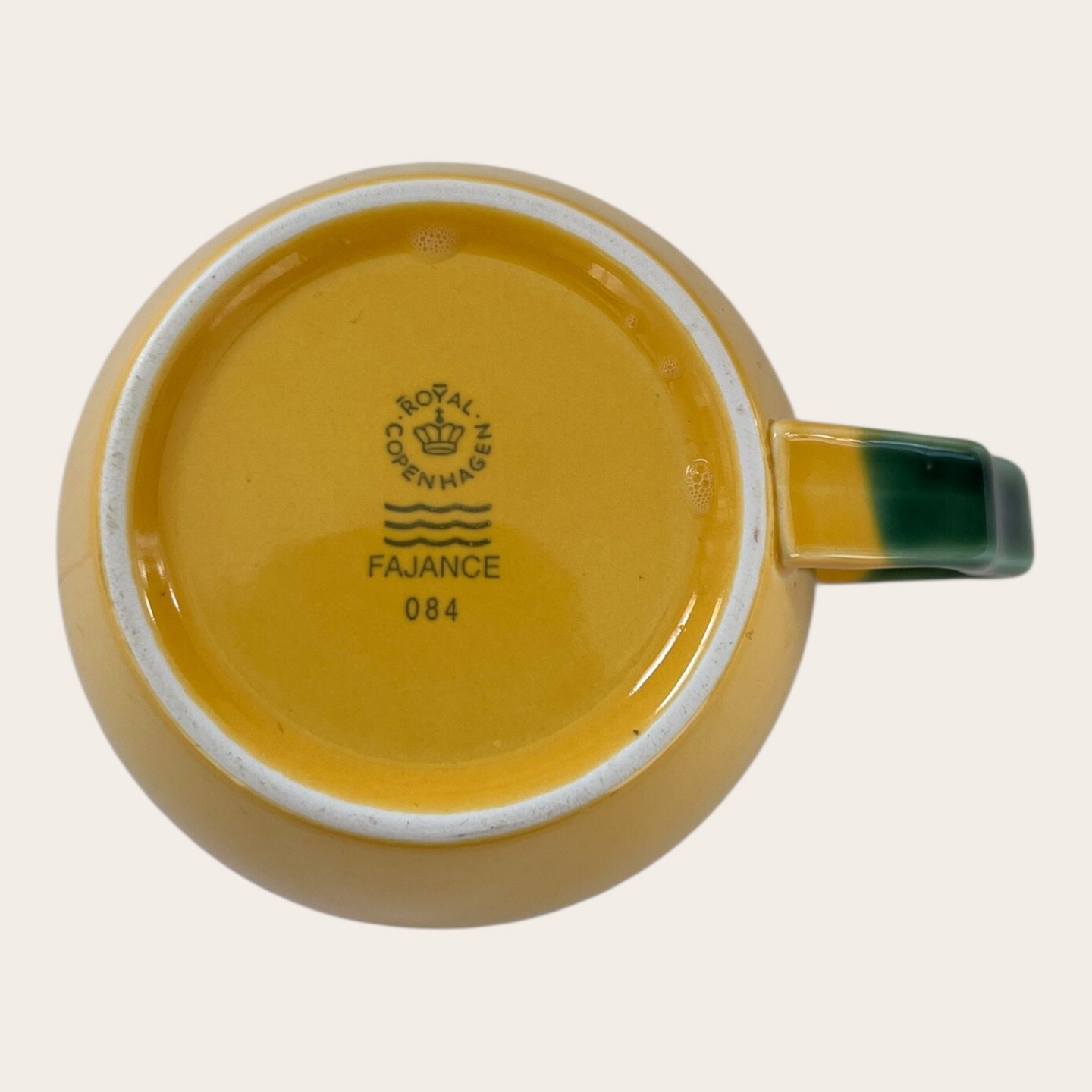 Royal Copenhagen, Aluminia, Ursula, Teacup, Yellow/Green #084, 13cm wide, 7cm high, 9.5cm in diameter, Design Ursula Munch Petersen, 6 pcs. dark yellow, 4 pcs. slightly lighter yellow *Good condition*