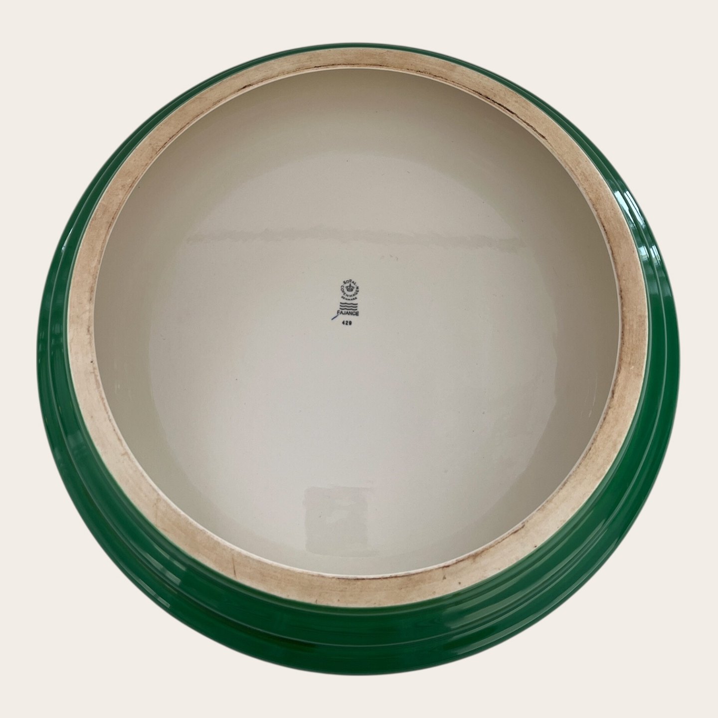 Royal Copenhagen, Aluminia, Ursula, Centerpiece, White/Green #429, 1st sorting, 38cm in diameter, 8cm high, Design Ursula Munch Petersen *Good condition with minimal signs of wear*