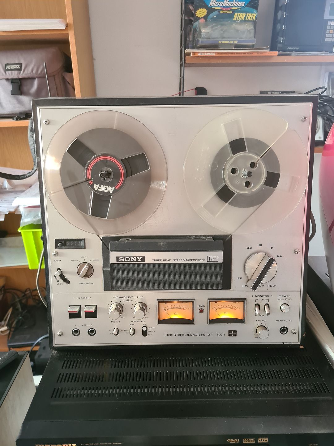 Text available in Danish: Spolebåndoptager fra Sony model TC-378. Fremstillet i 1977 og virker ok dog er counteren umiddelbart defekt. Trænger nok til lidt service både ydre og indre, men spiller som sagt udmærket. NB svagt indridset på fronten. (Billede)