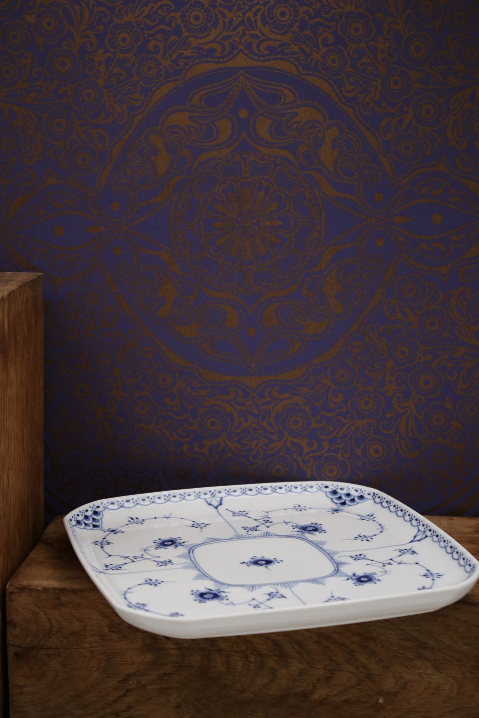 Royal Copenhagen Blue Fluted Half Lace Square Plate.
