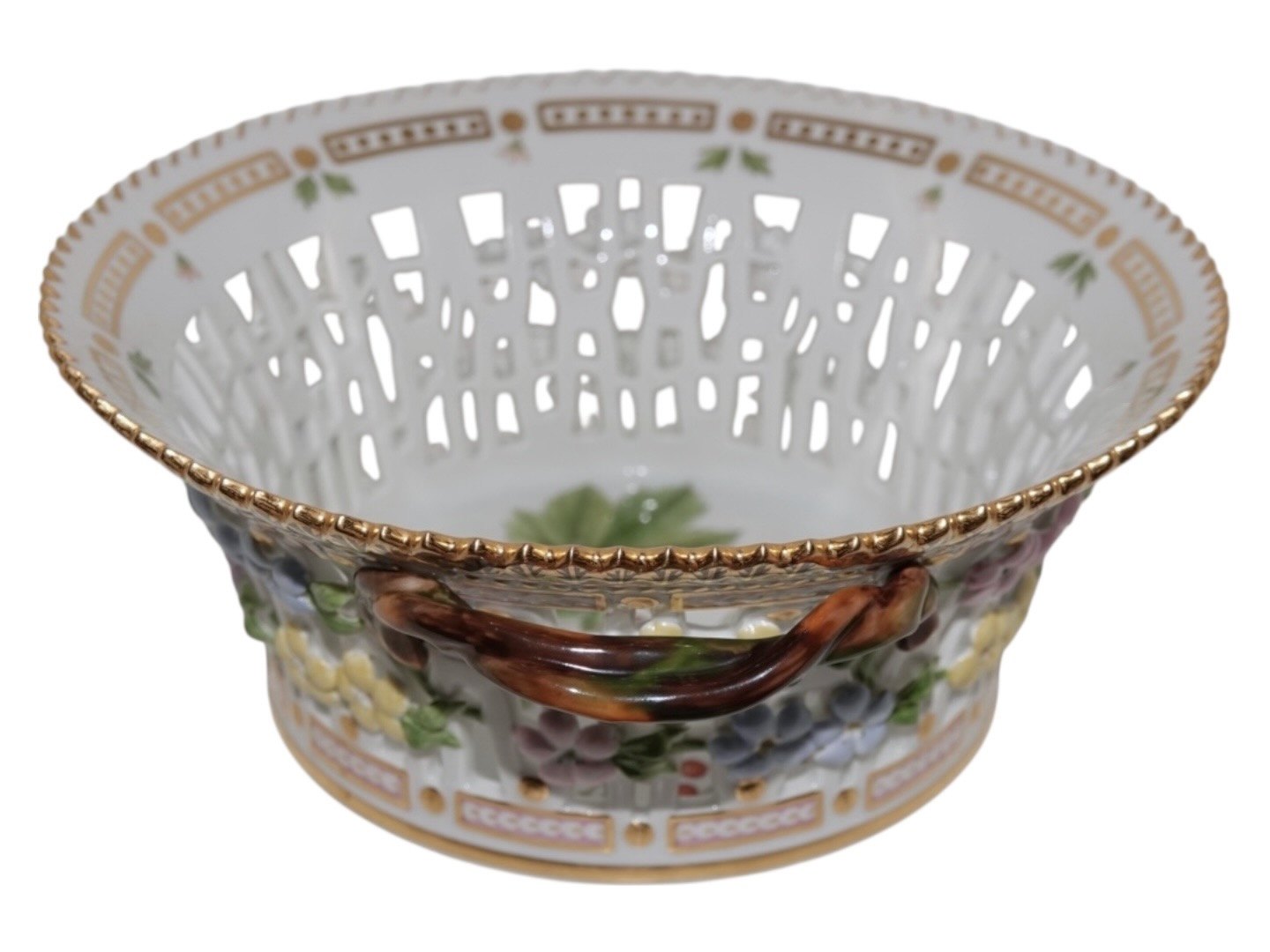 Royal Copenhagen Flora Danica, round fruit basket.