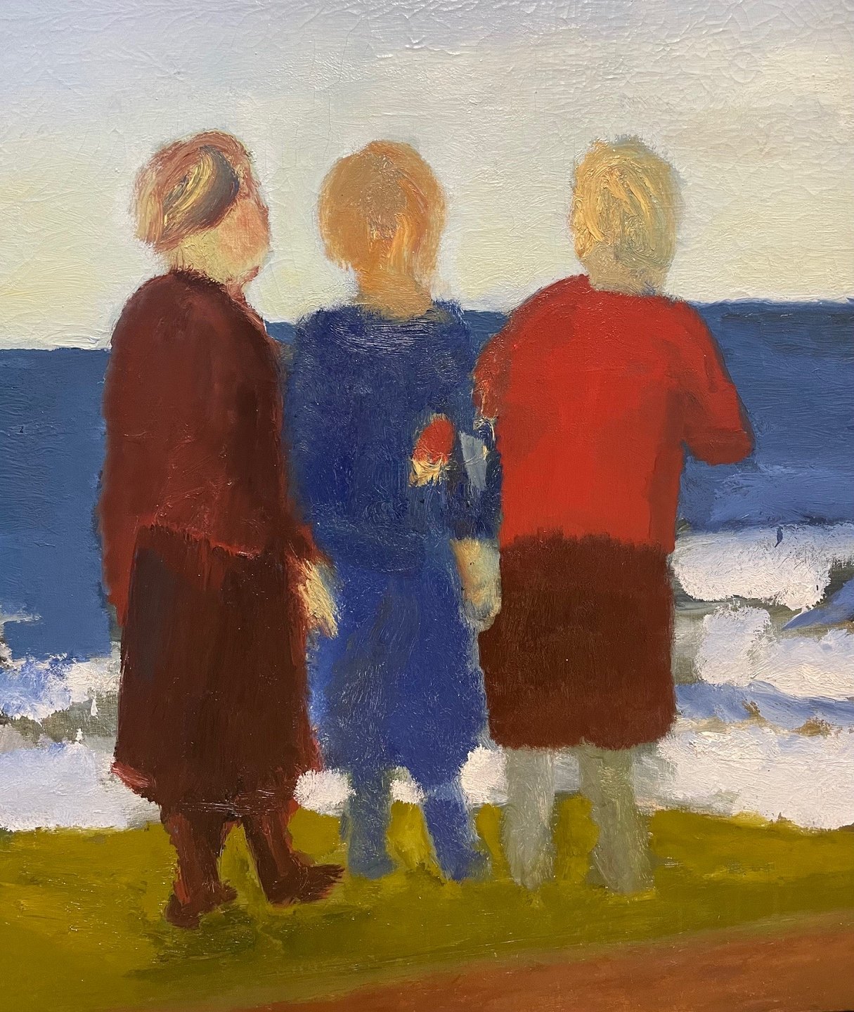 "Women on the Beach" Oil painting in a silver frame, the painting has some cracks, sold for a customer.