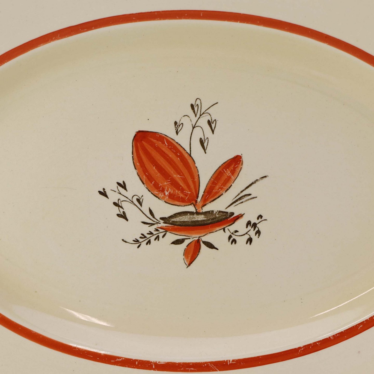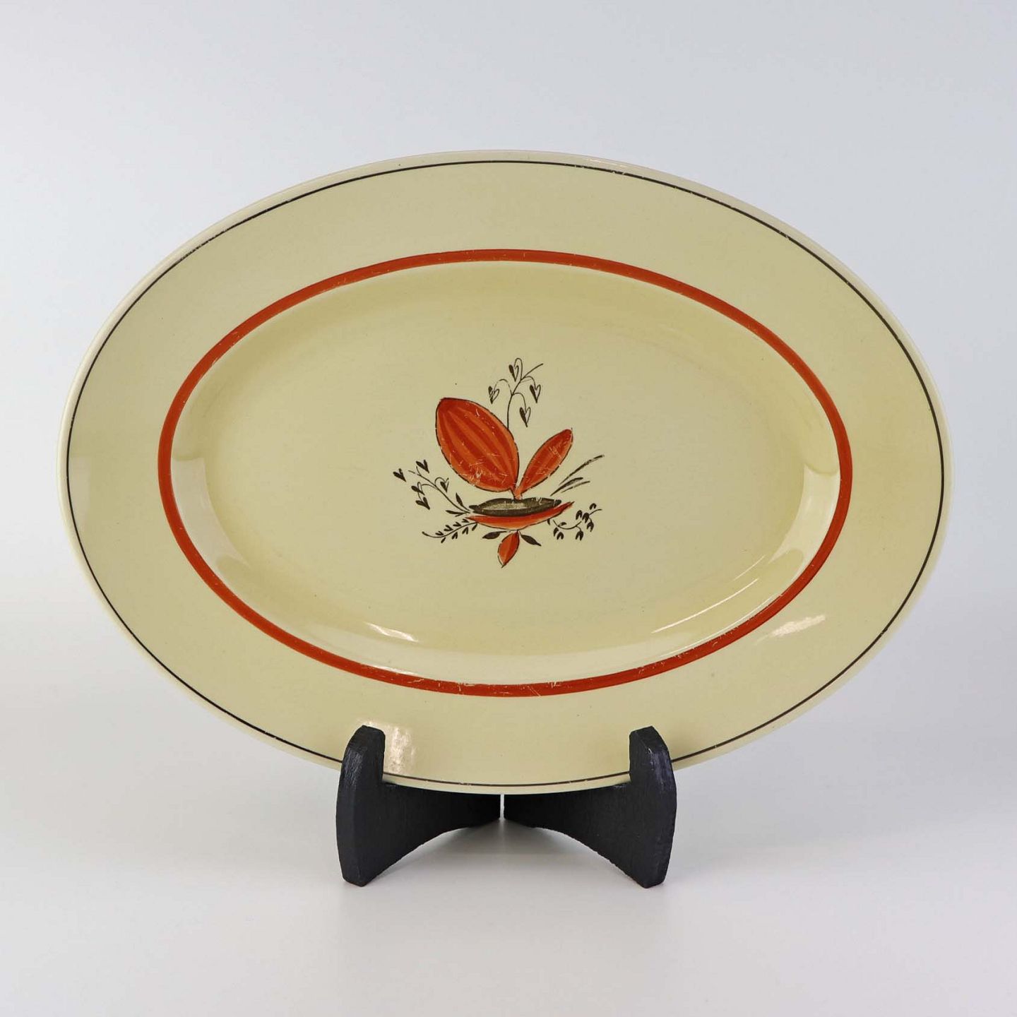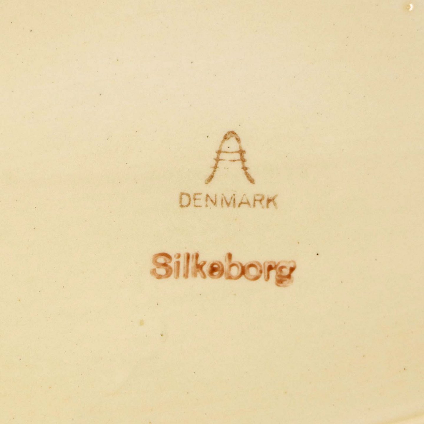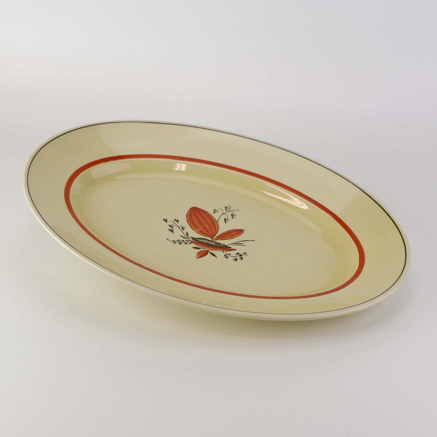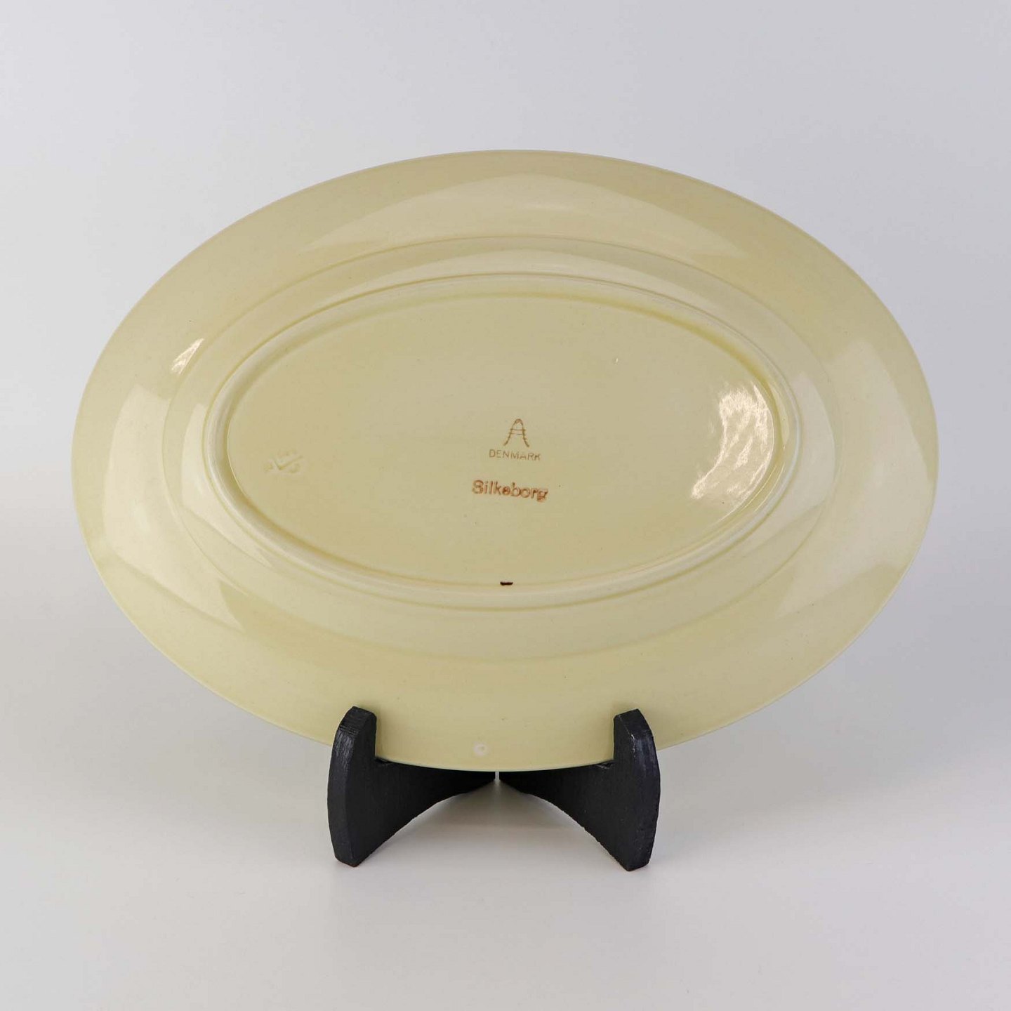 Ovalt fad i fajance fra stellet Silkeborg fremstillet i perioden 1937-1939