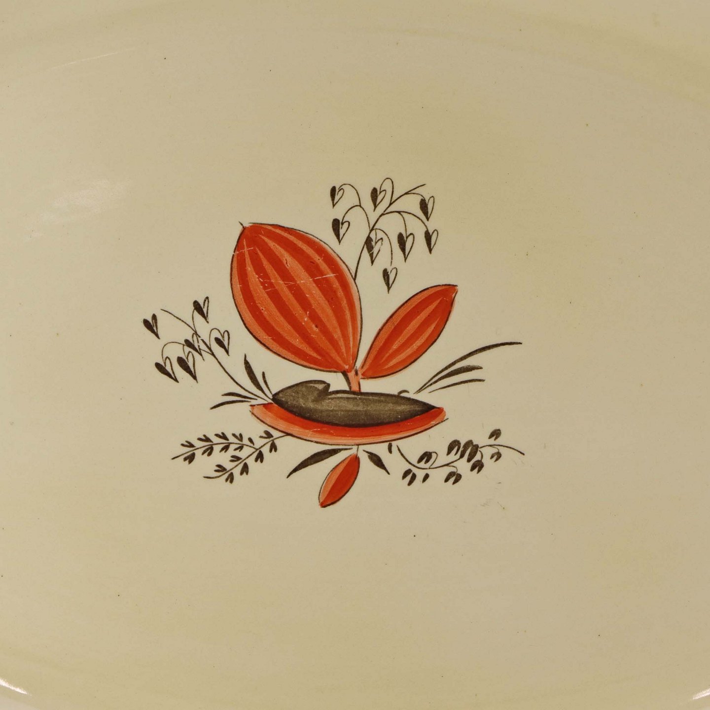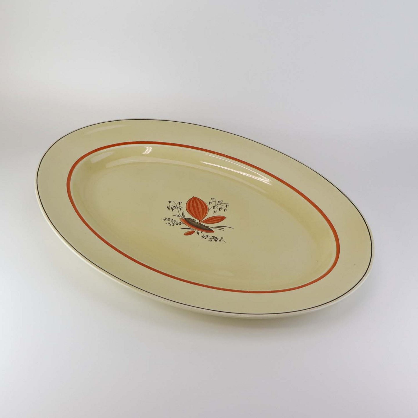 Stort ovalt serverings fad i fajance fra stellet Silkeborg fremstillet i perioden 1937-1939