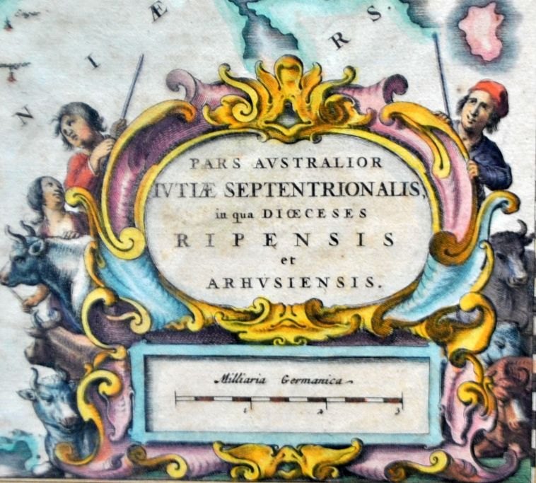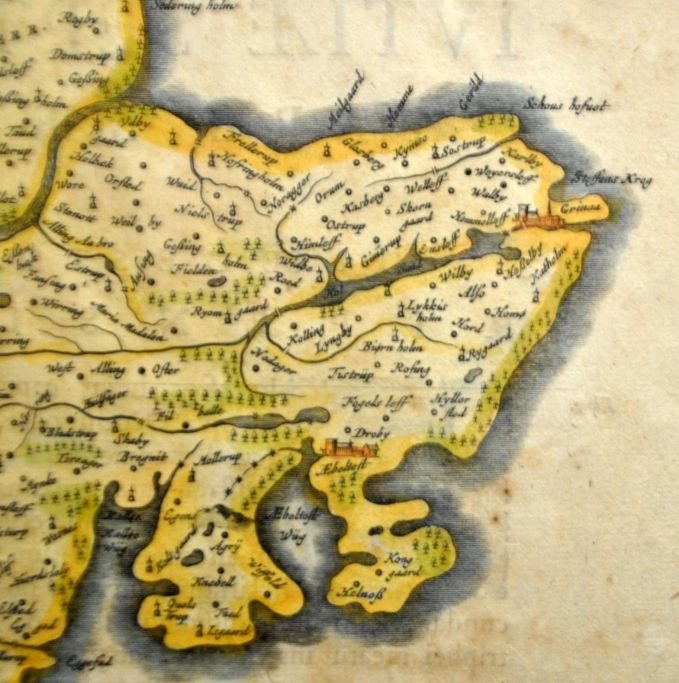 Frederik de Witt (17th century) Netherlands: Special map of the Ribe and Aarhus dioceses. ca. 1660. Hand-colored copper engraving. Unsigned. 44 x 58 cm. Latin edition.
