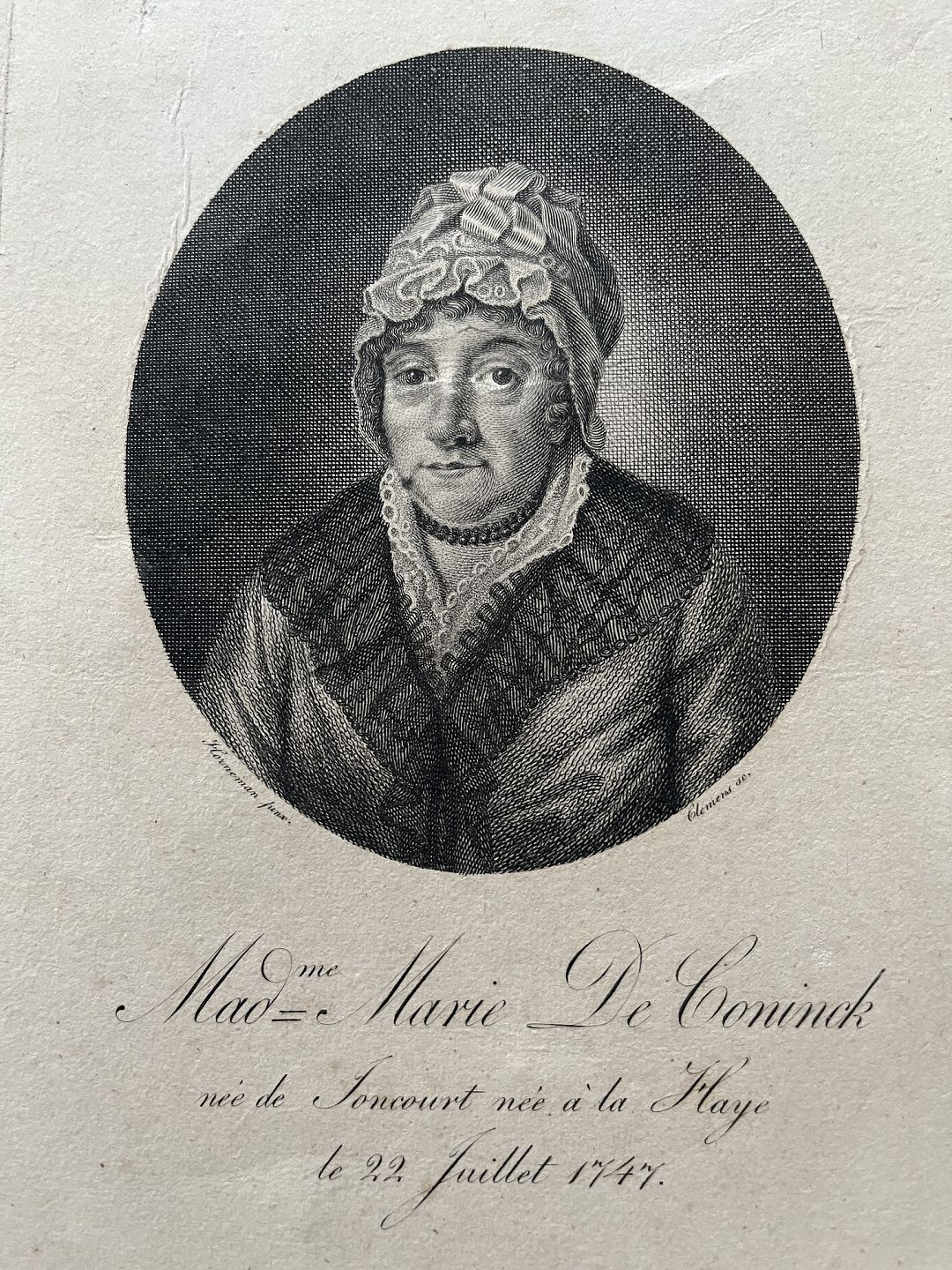 Betegnet - Mademe Marie de Coninck.