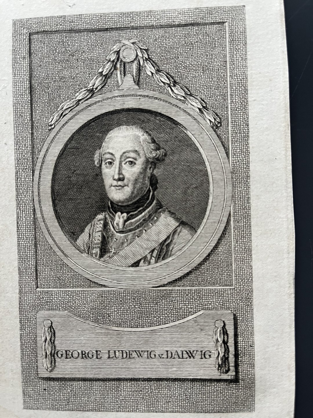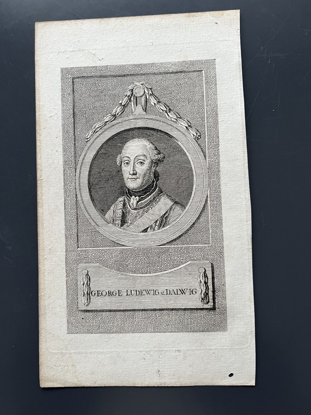 Text available in Danish: Kobberstik - Portræt af Preussisk Kavalerigeneral Baron Georg Ludwig von Dalwig.
