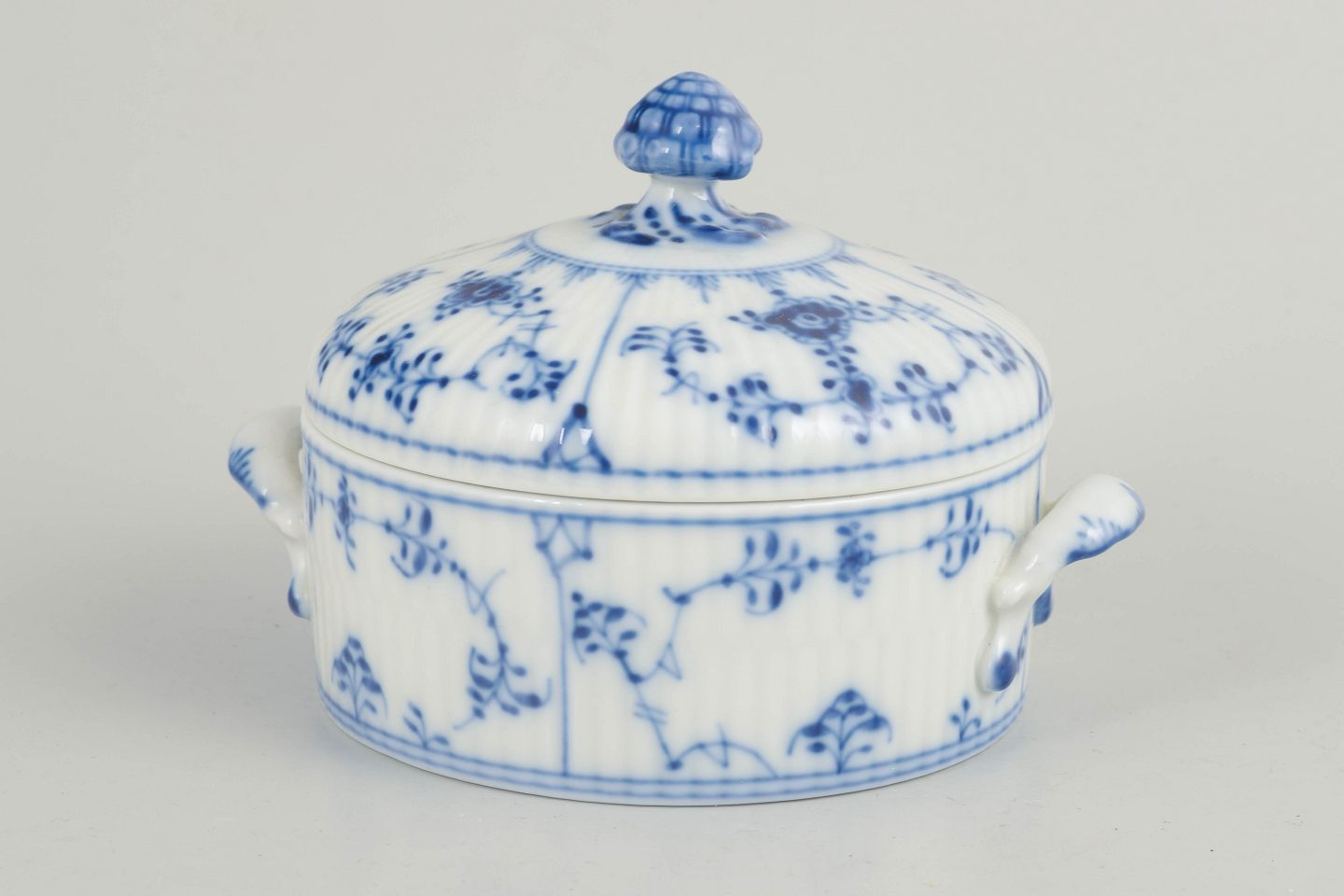 Royal Copenhagen, sugar bowl with lid and handles, Blue Fluted Plain. 1980s.