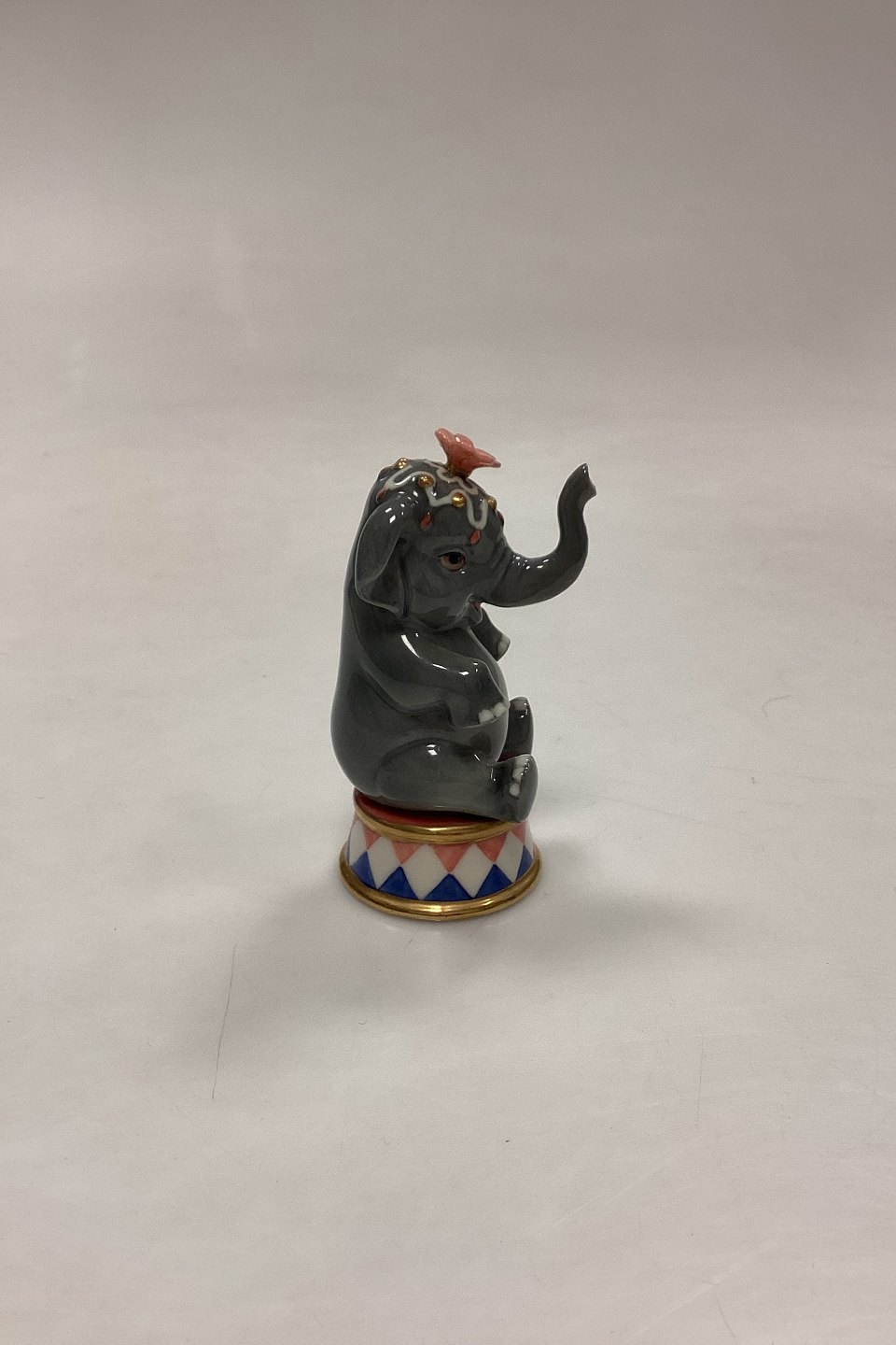 Royal Copenhagen Figurine - Circus Elephant No. 208. Figurine from the Mini Circus Collection. Designed by Svend Vestergaard from 2015-2019. Measures 9.5 cm / 3.74 in.