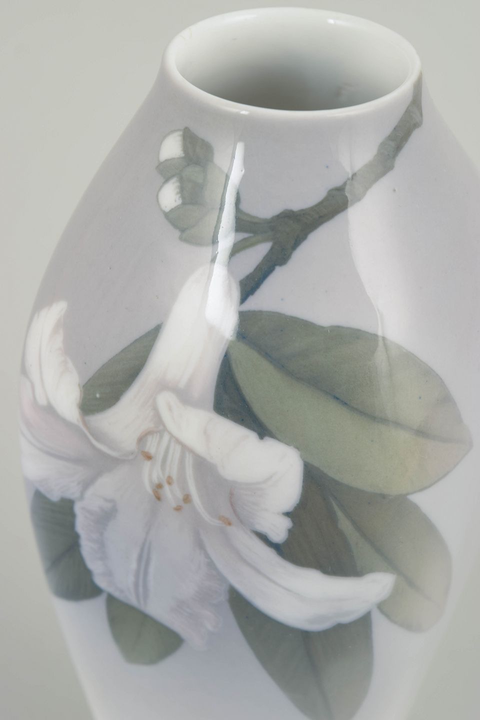 Around 1900, Art Nouveau was a prominent stylistic movement at Royal Copenhagen, characterised by organic forms, flowing lines and nature-inspired motifs. Vases from this period combine sculptural design with painterly underglaze decoration, reflecting a strong emphasis on overall harmony and high standards of craftsmanship.