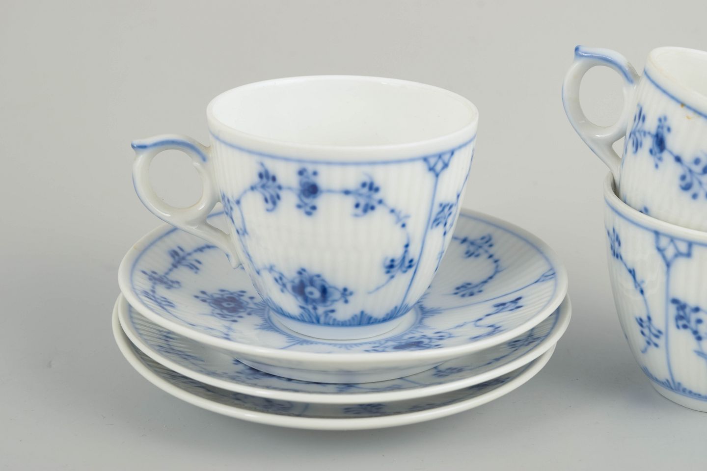 Royal Copenhagen, Blue Fluted Plain coffee cups with matching saucers, set of 3.