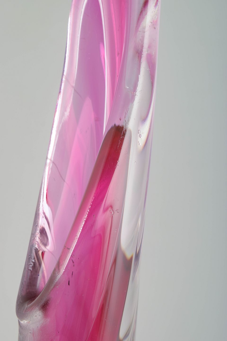 Murano glass is celebrated for its high level of craftsmanship and refined techniques, where form, colour and optical effects are often combined into sculptural expressions. In the 1960s and 70s, tall monumental vases became popular as statement interior pieces, designed to showcase the transparency of the glass and the dynamic, twisted patterns within the material.