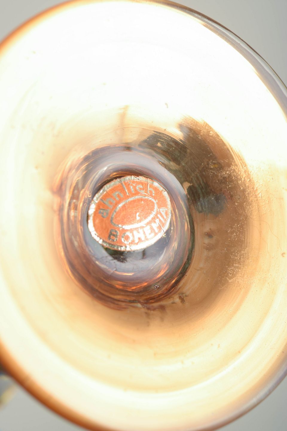 Bohemian art glass from the 1930s is characterised by a richly decorative expression, combining coloured glass with gilding and hand-painted enamel. The period reflects a strong tradition of craftsmanship and ornamentation, making these pieces highly collectible today.