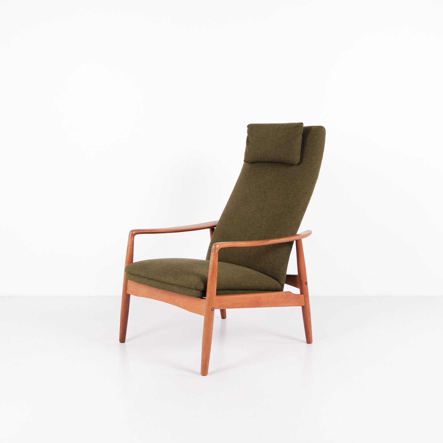 A Pair of Lounge Chairs With Stool - Teak - Green Fabric - Alf Svensson - Fritz Hansen - 1960s
