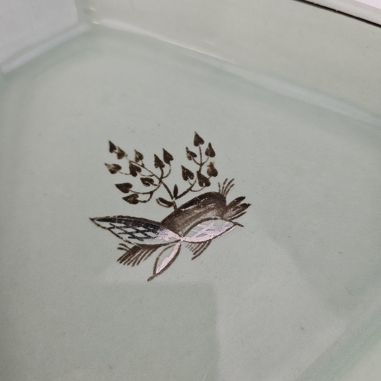Stel i lysegrøn fajance med natur dekoration og flettet kant