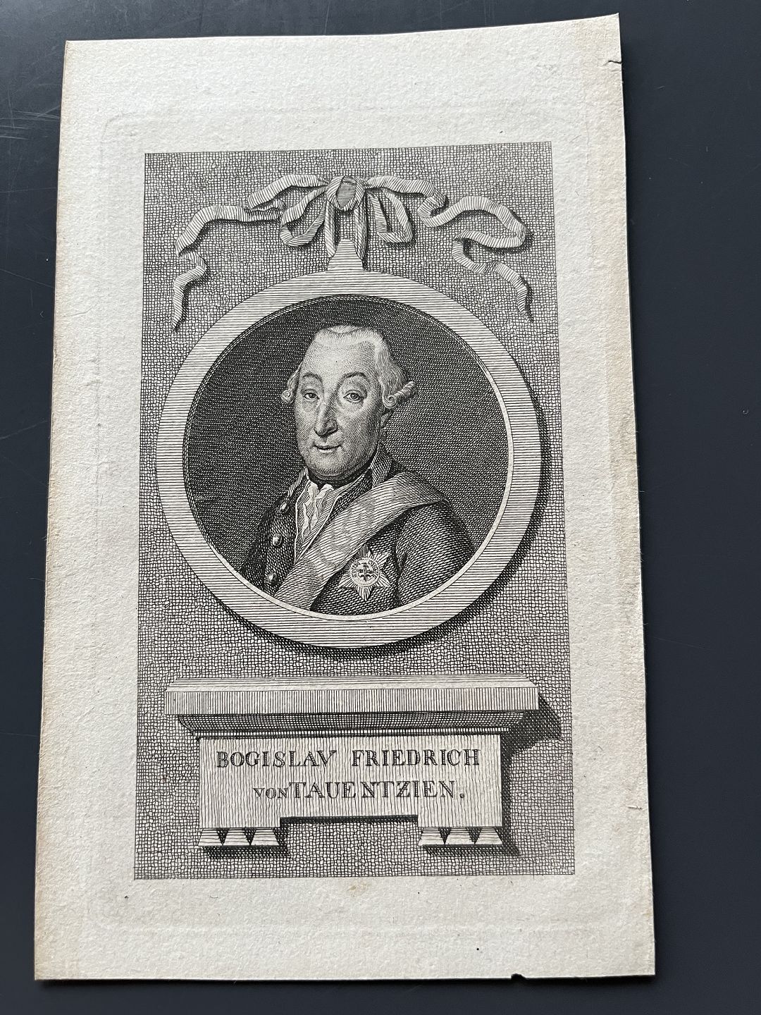 Text available in Danish: Kobberstik - Portræt af Preussisk General Bogislav Friedrich von Tauentzien.