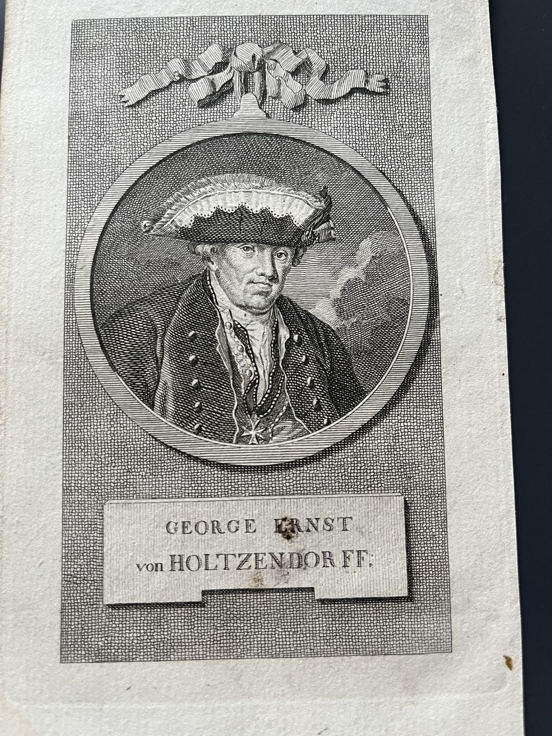 Text available in Danish: Kobberstik - Portræt af Preussisk Generalmajor George Ernst von Holtzendorff.