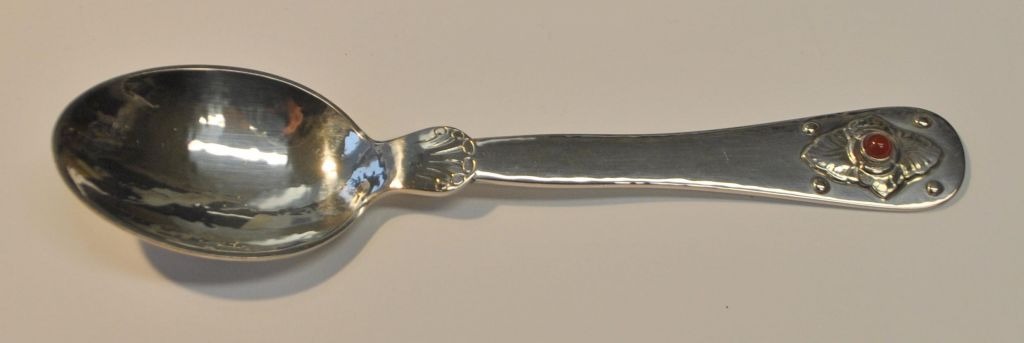 Georg Jensen anniversary spoon in sterling silver, 1979. With carnelian. Stamped. L.: 15.5 cm.