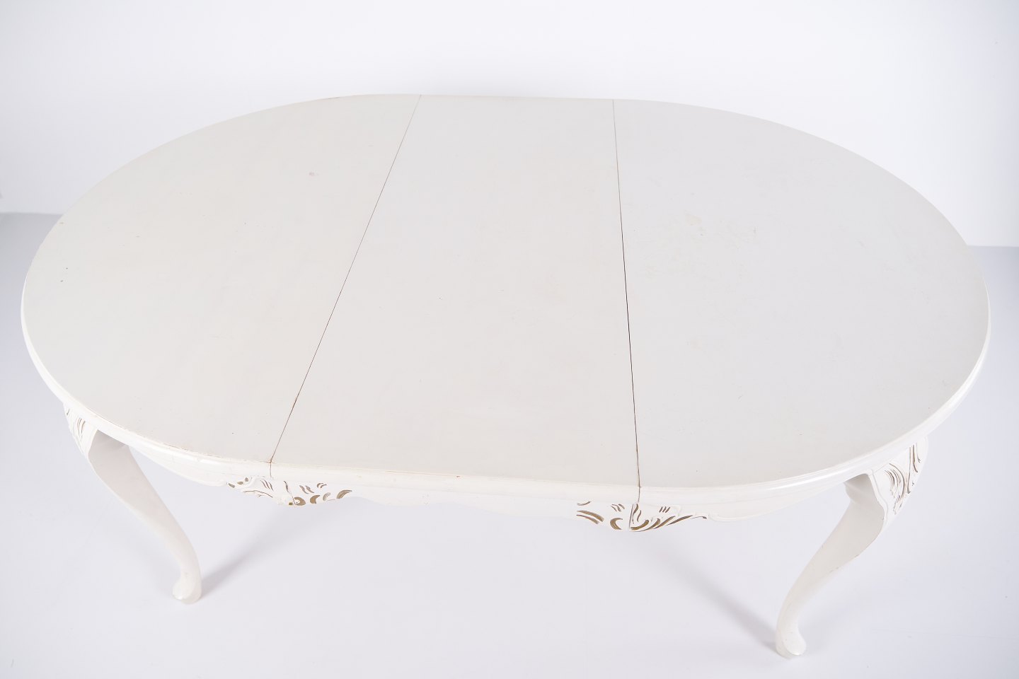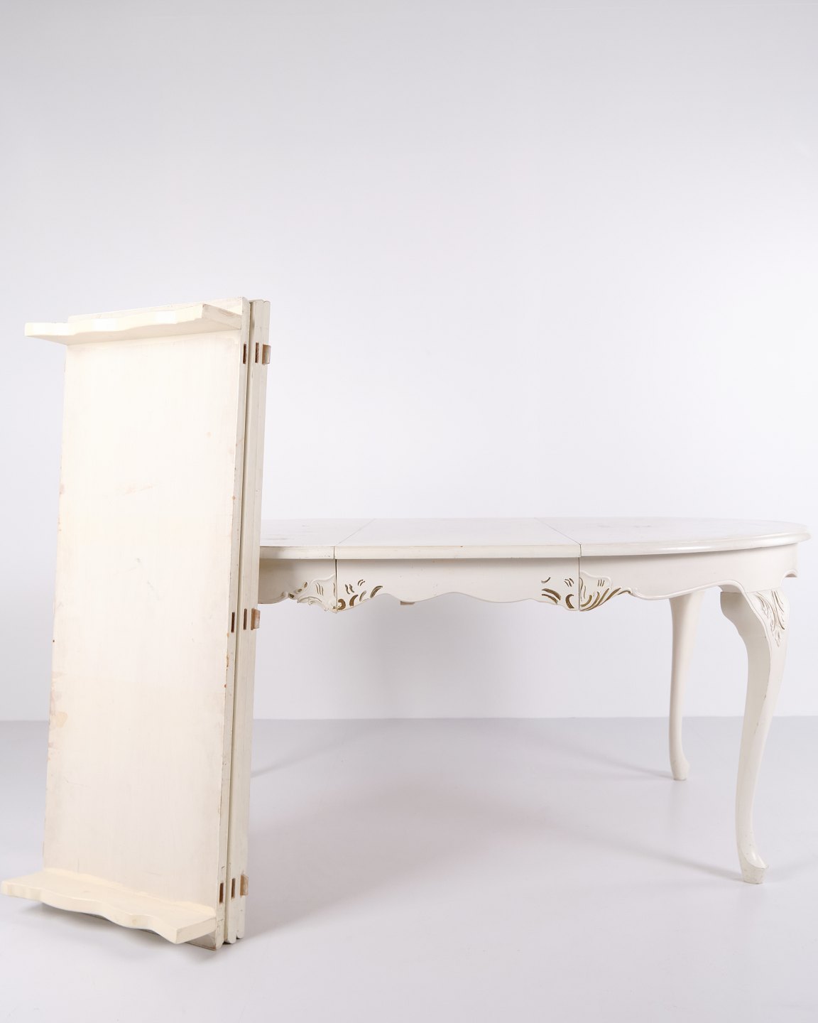 Antique Round Dining Table With Extension - Neo Rococo Style - White Painted With Decorative Details - 1920s