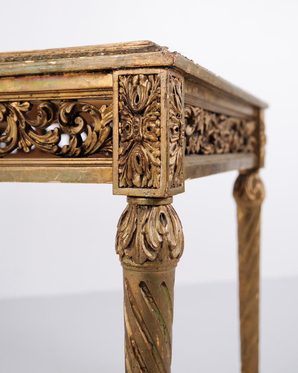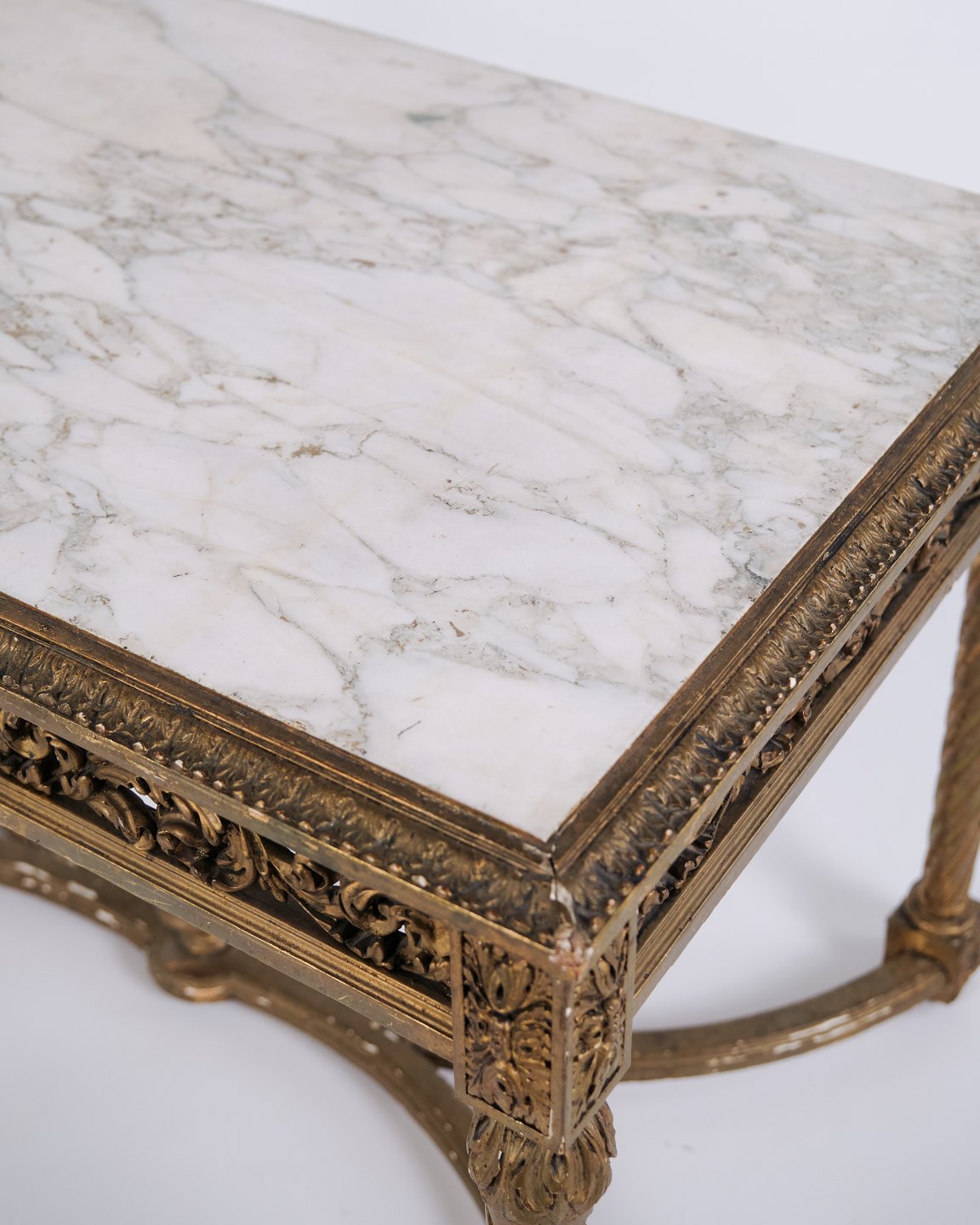 Antique Salon Table With Marble Top – Detailed Carvings – Gilded Wood – Louis XVI Style – 1850s
