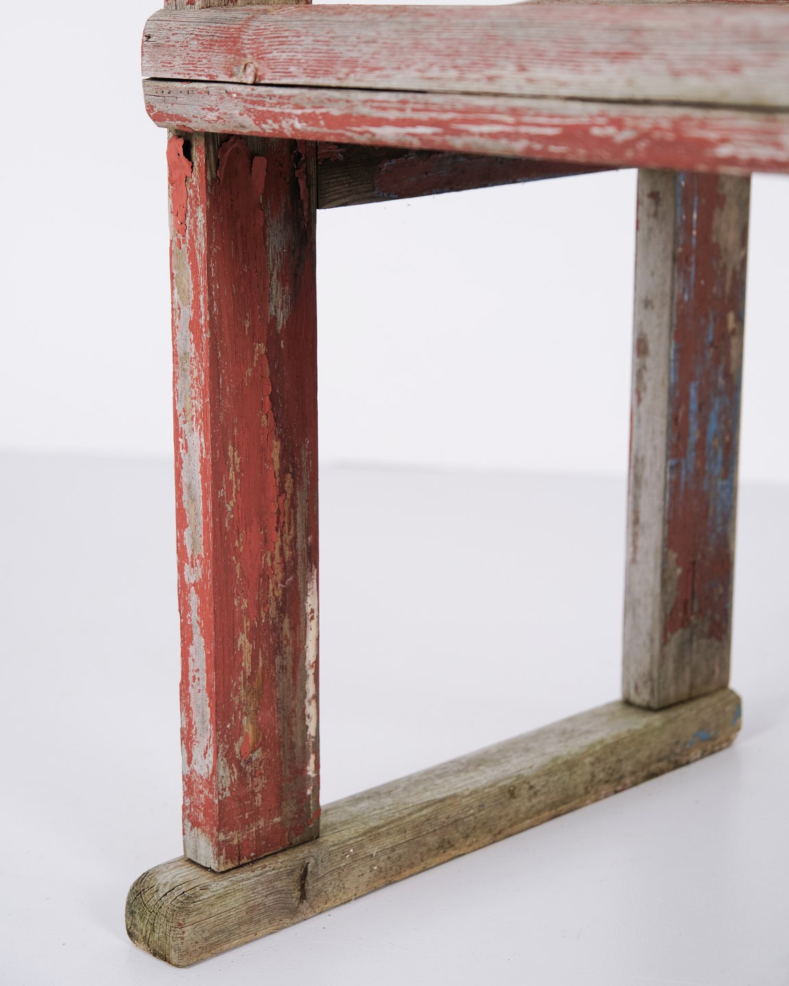 Antique bench from the 1860s in original red-painted pine wood. Antique red-painted bench from the 19th century.