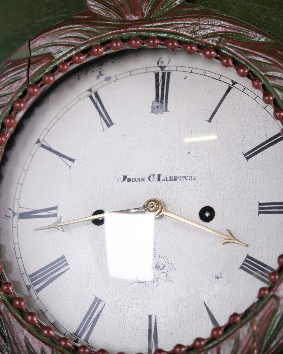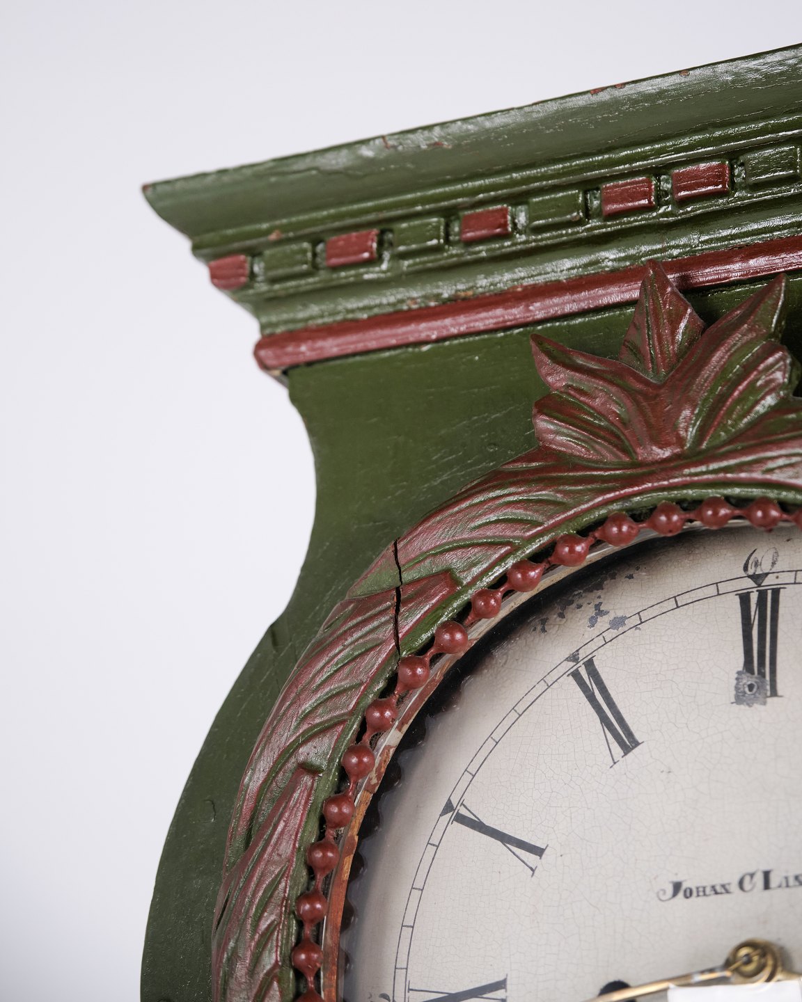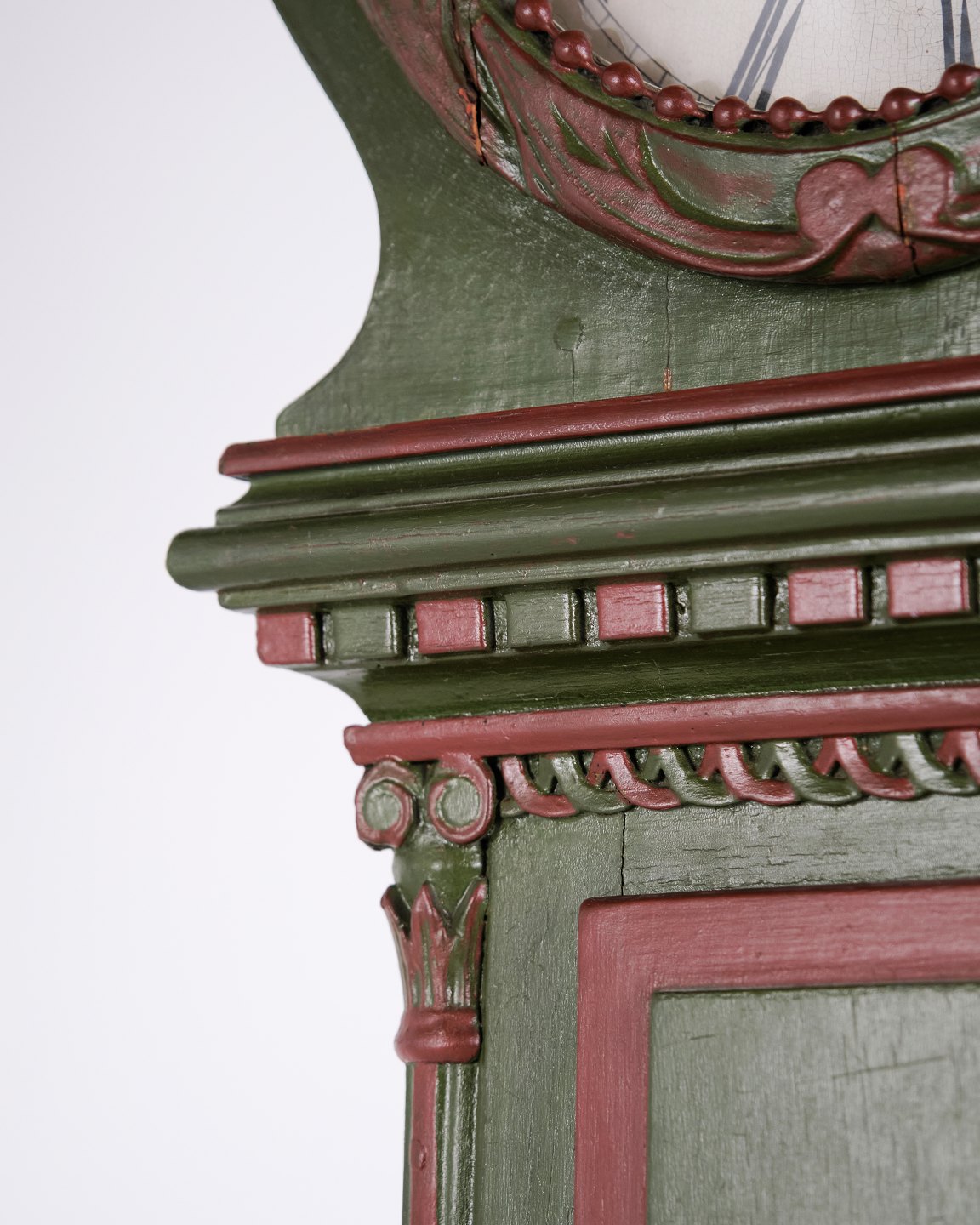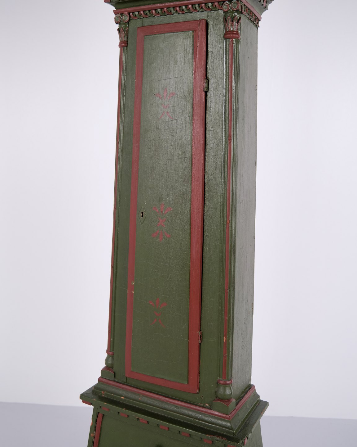Bornholm Longcase Clock – “Frøken” Model – Hand-Painted With Carved Details – Green & Red Paint – 1860s