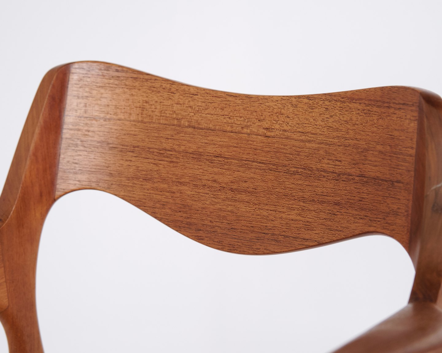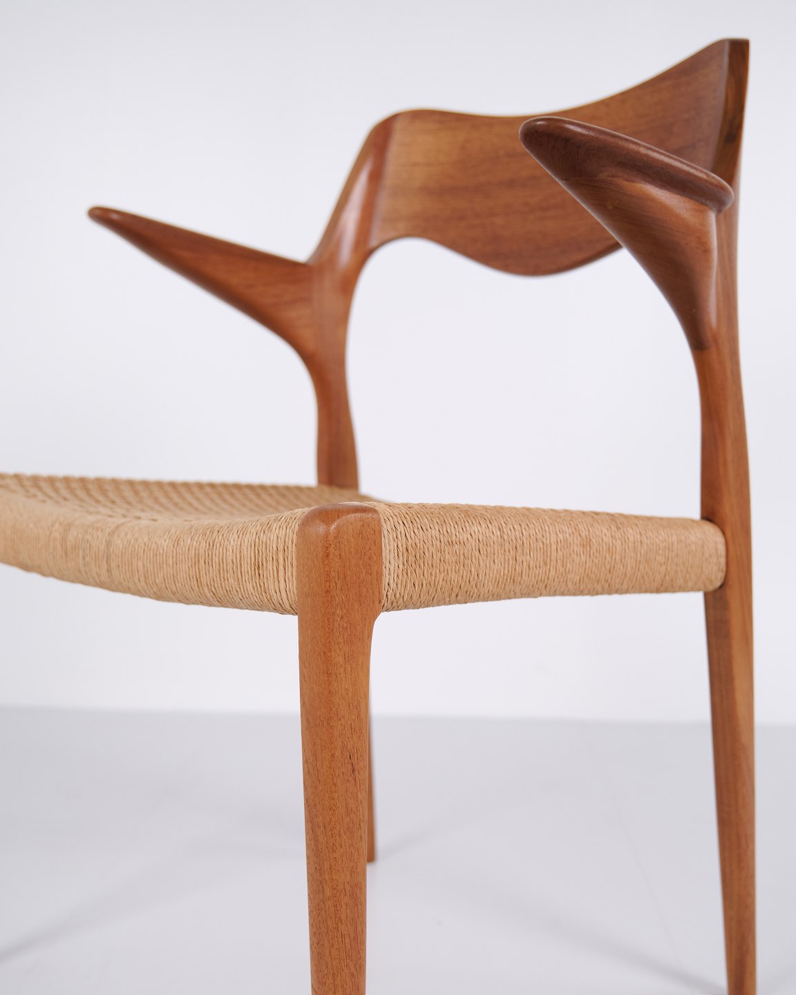 Model 55 dining chair by N.O. Møller for J.L. Møllers Møbelfabrik in teak and woven seat from the 1960s. Danish design classic.