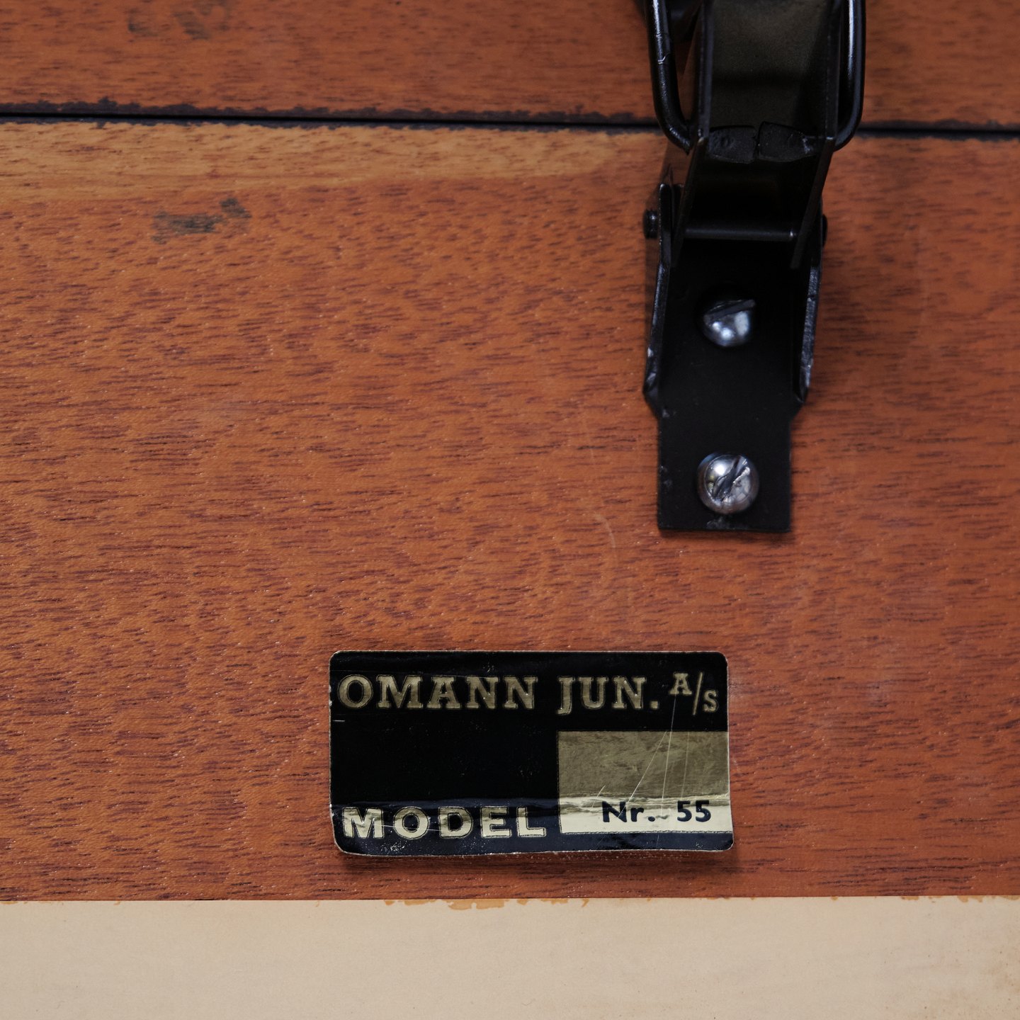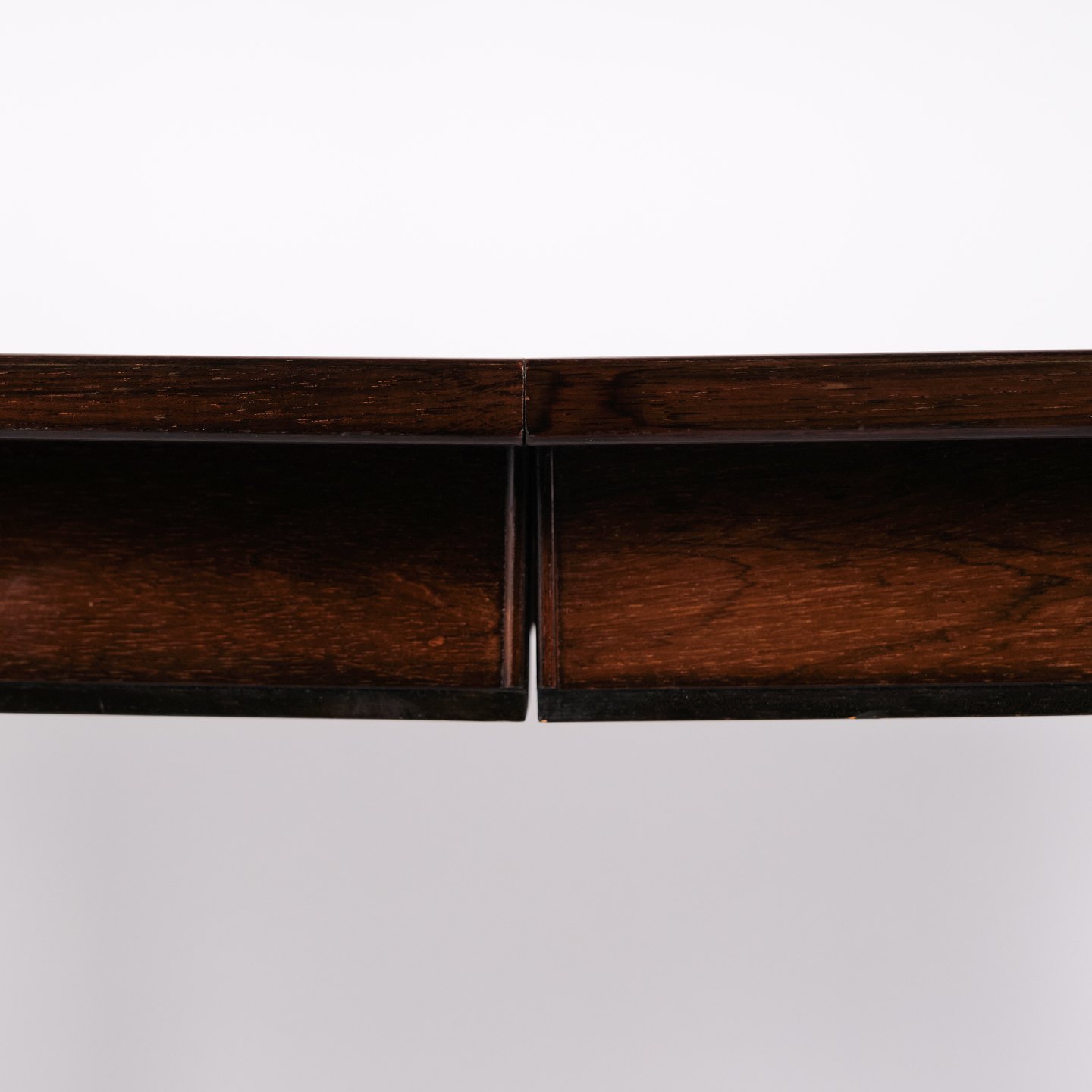 Omann Jun Model 55 dining table by Gunni Omann in rosewood with extension leaves from the 1960s. Danish design rosewood dining table.