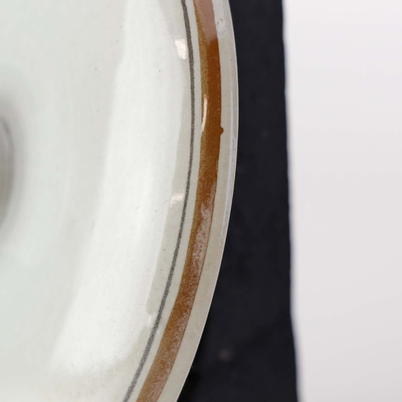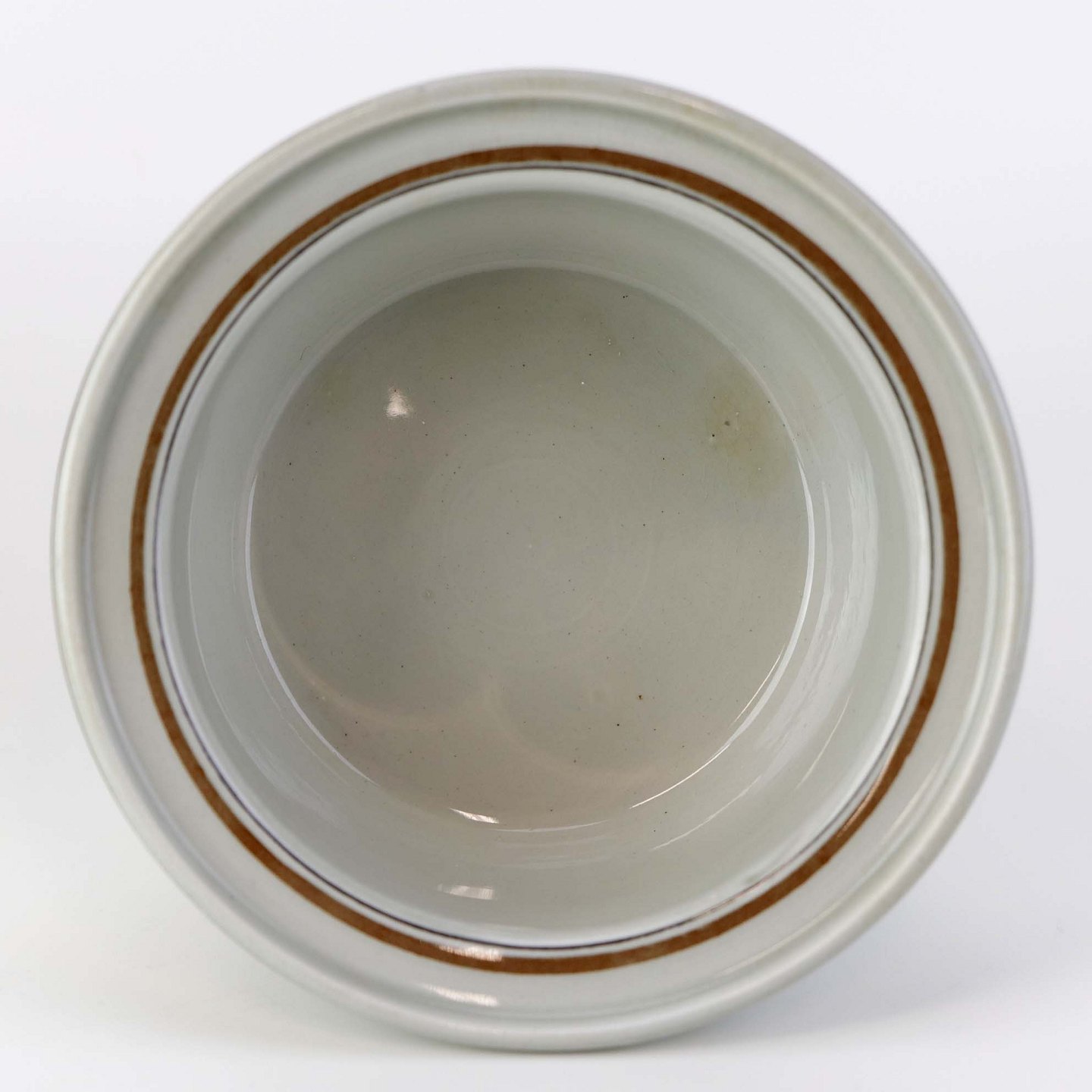 Smørskål med låg i fajance fra stellet Kirsten, som blev fremstillet i perioden 1934-1957. Nr. 1749