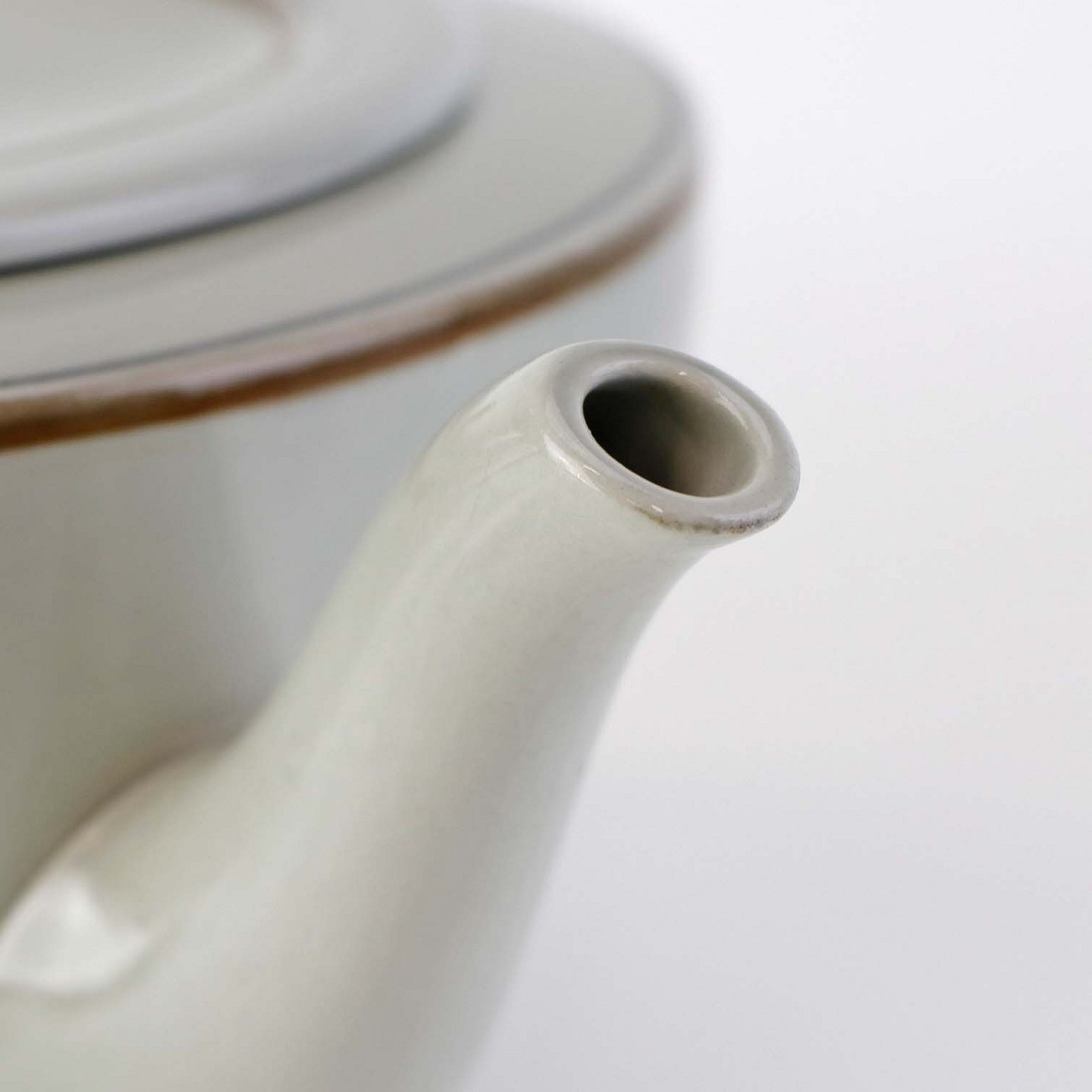Fremstår med indvendige krakkeleringer i glasuren, lettere ujævn glasur på topkanten samt mindre brugsspor på glasuren ved tuden.