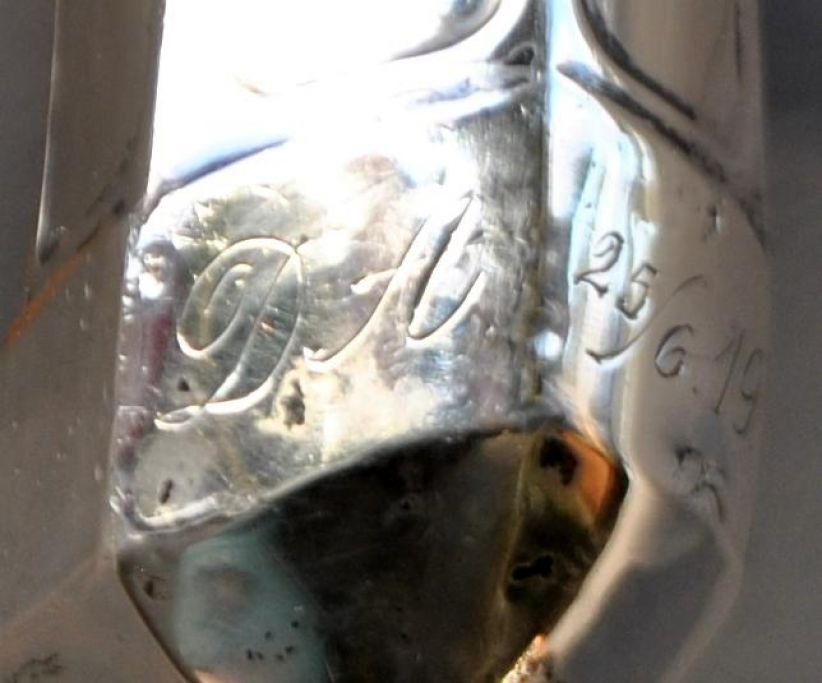 Wooden walking stick with silver fittings, 20th century Denmark. Stamped: 830 S. Engraved: DA 25/6 19. L: 92 cm.