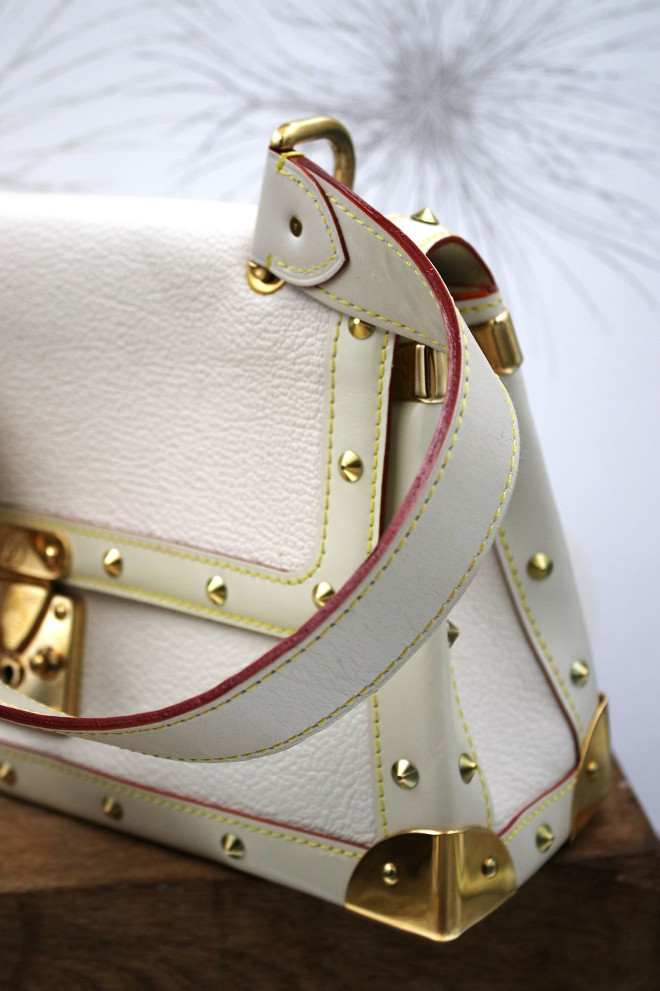 Louis Vuitton vintage bag, Suhali Le Talentueux from 2006 in white leather with gold rivets and corner reinforcement.