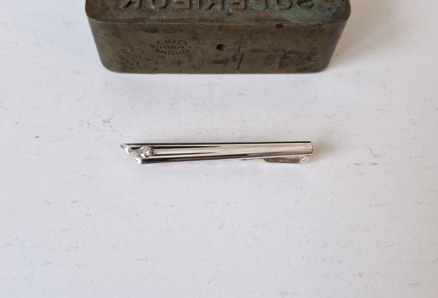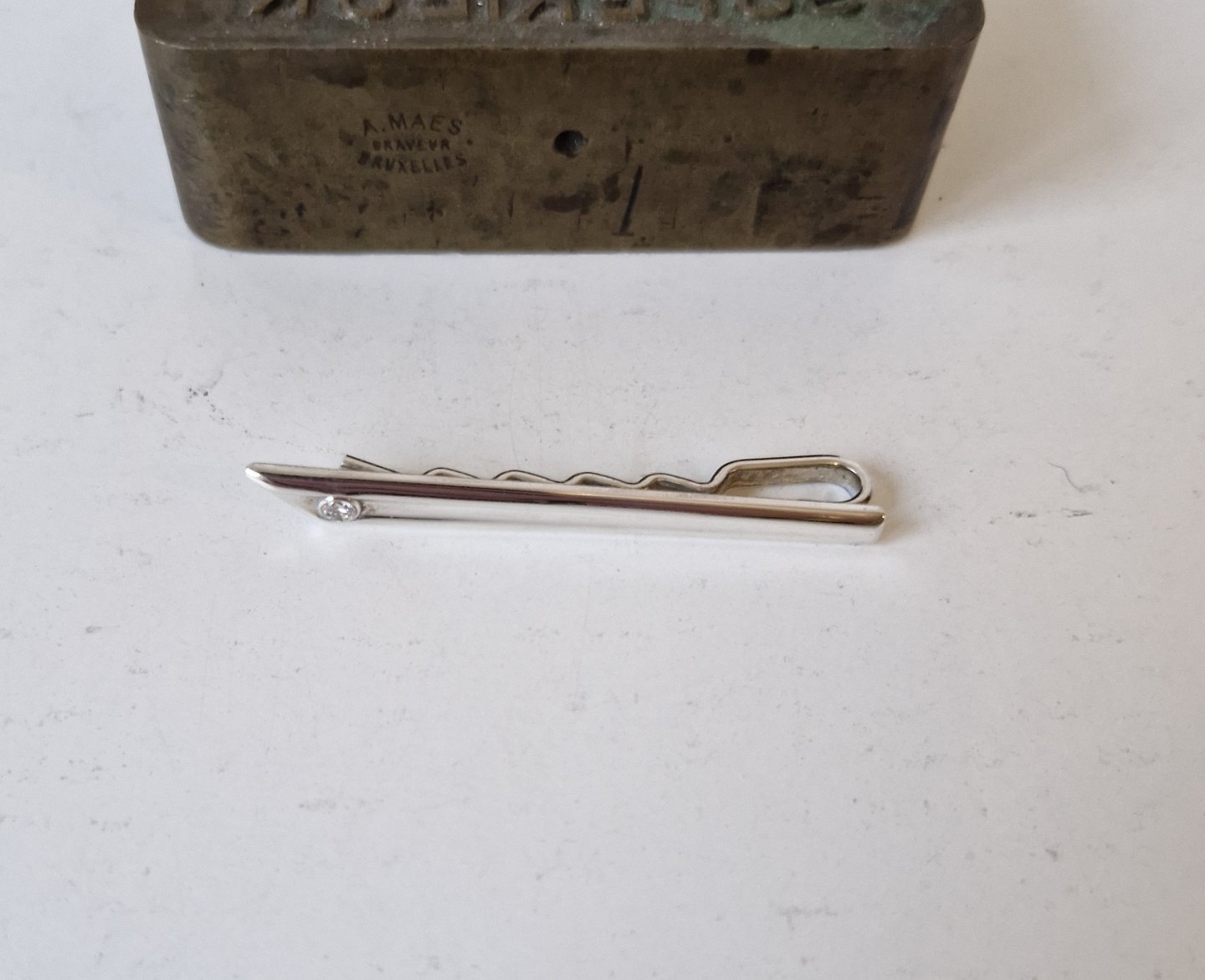 Tie clip in sterling silver with clear stone