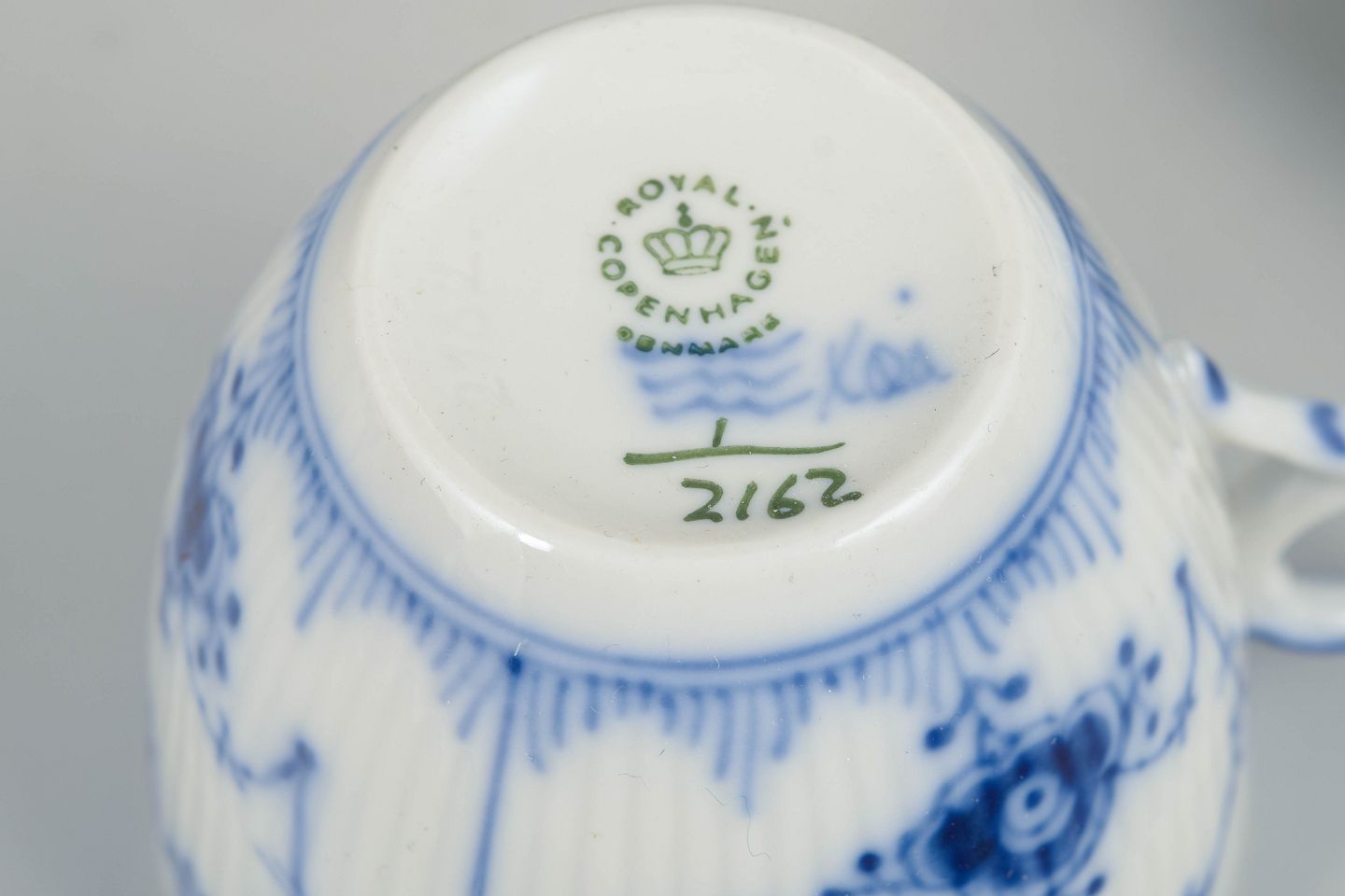 Porcelain coffee set from the Blue Fluted Plain series, consisting of cups and saucers for four persons, model 1/2162. Classic fluted form with hand-painted blue decoration.