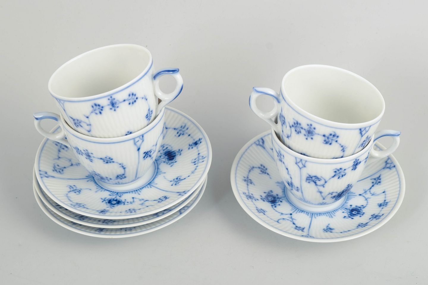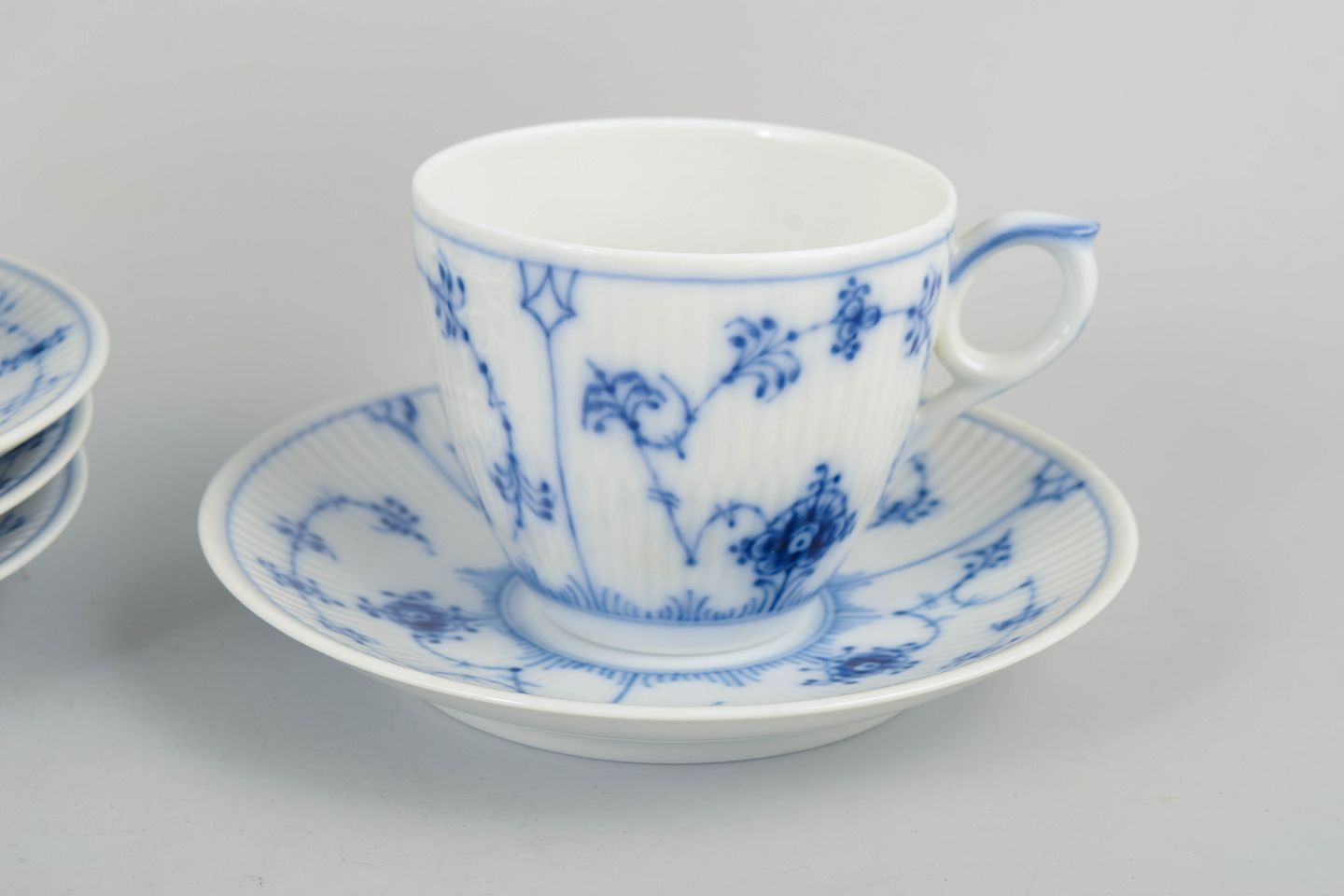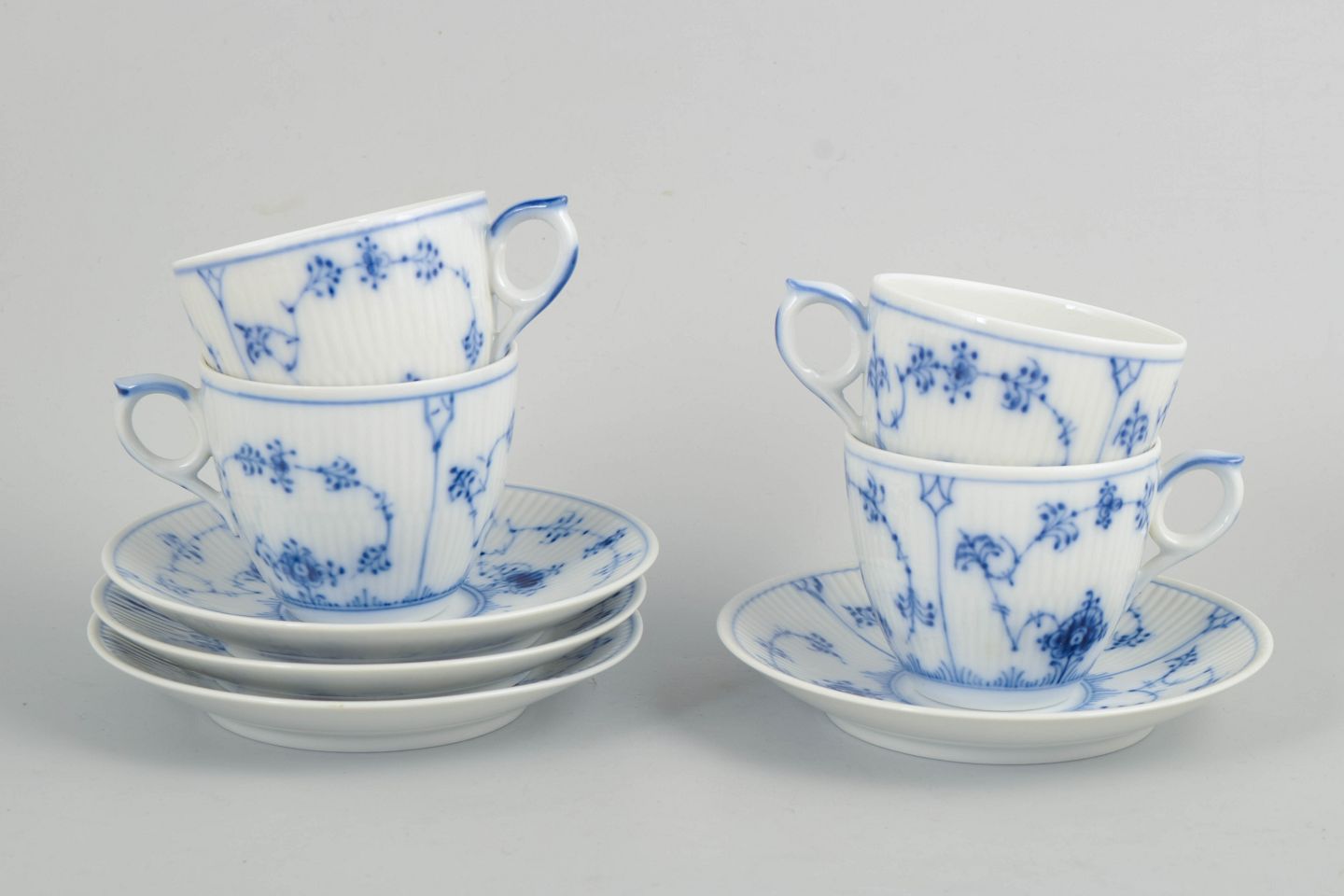 Porcelain coffee set from the Blue Fluted Plain series, consisting of cups and saucers for four persons, model 1/2162. Classic fluted form with hand-painted blue decoration.