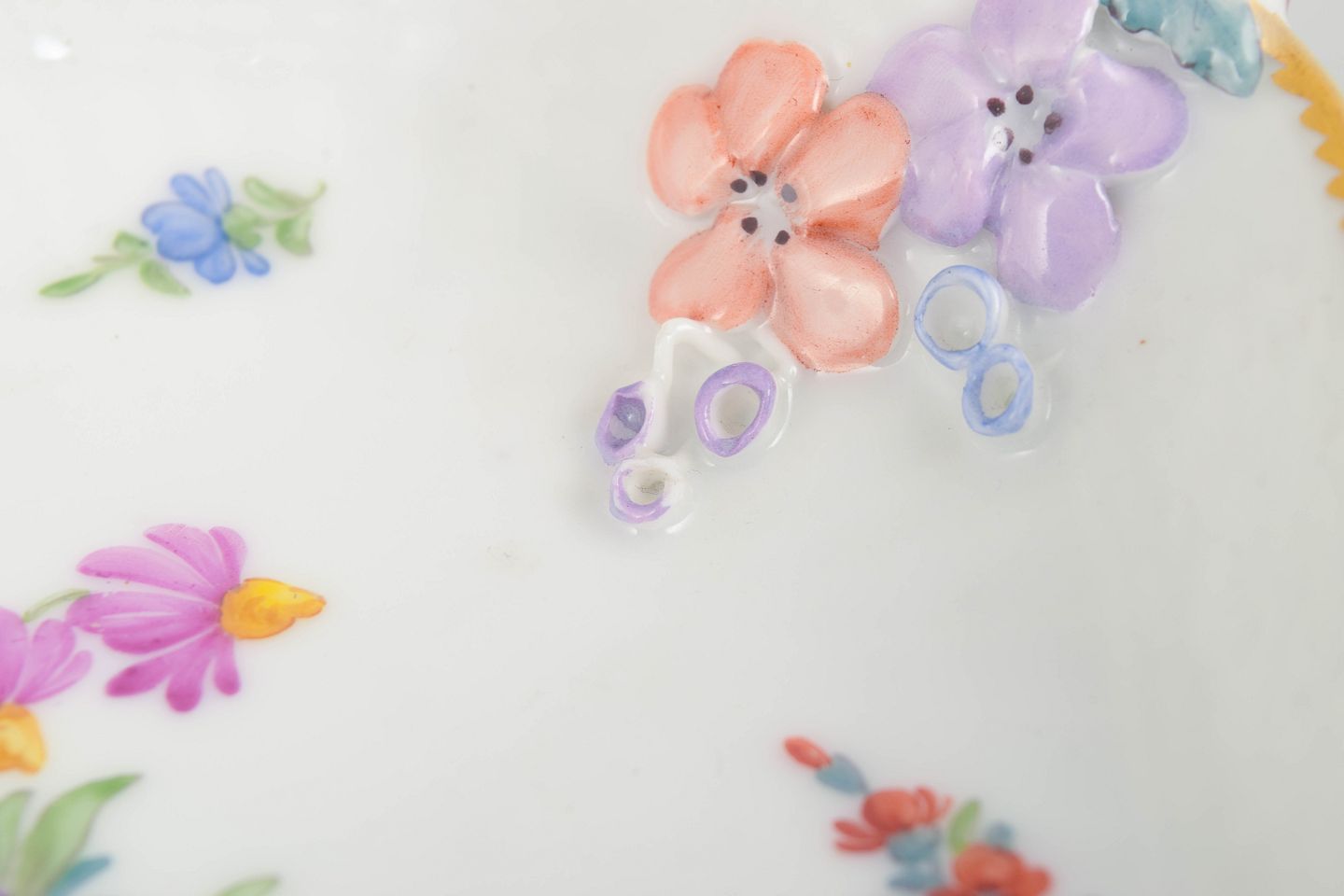 Condition: 1st factory quality; very small and insignificant chip to the floral decoration, see photo.