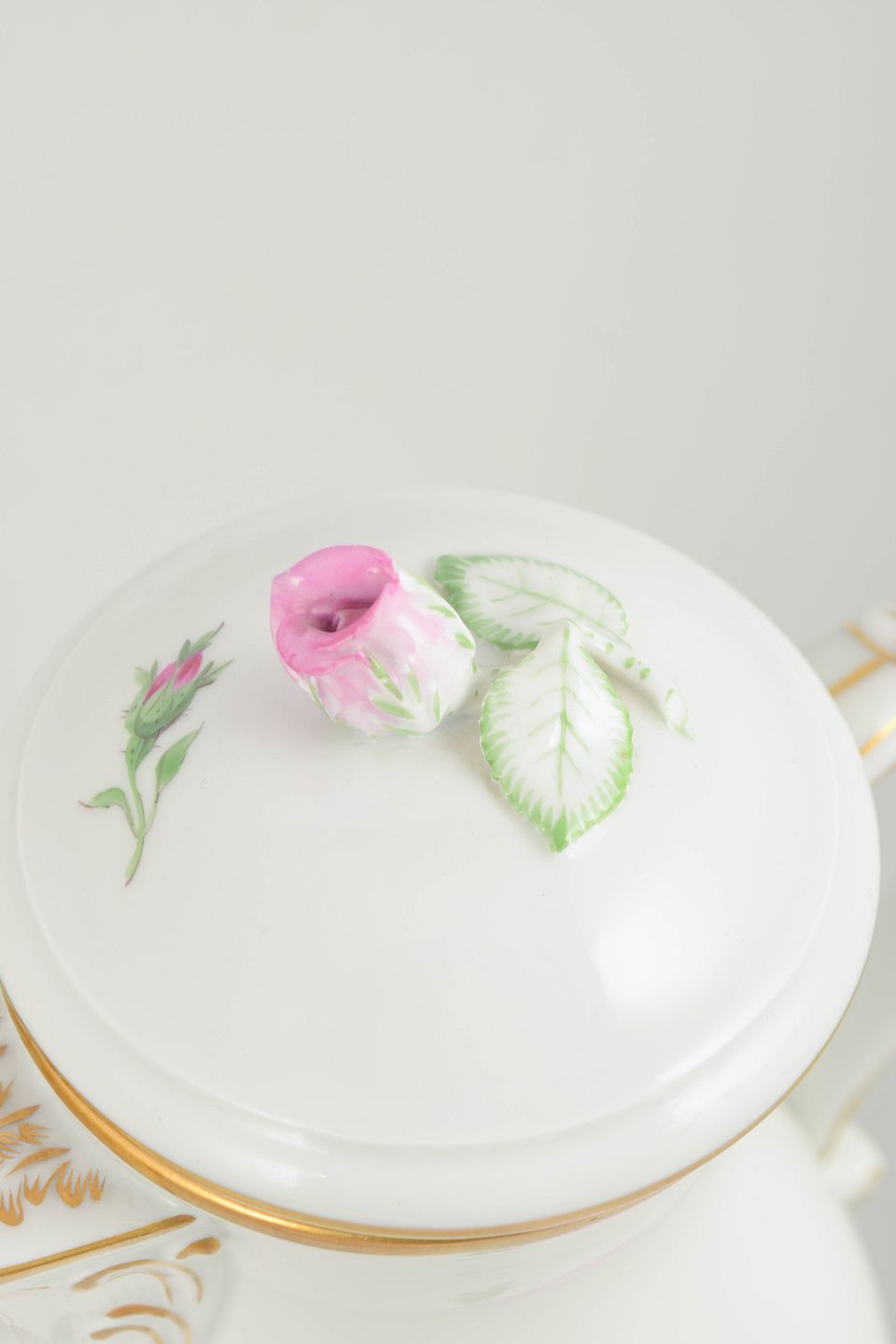 Since the early 18th century, Meissen has been among the most influential European porcelain manufactories. The factory is especially renowned for its refined floral decoration and confident use of gilding. The Pink flower series reflects the classical Meissen tradition of naturalistic hand-painted flowers, which was particularly popular around the turn of the 20th century.