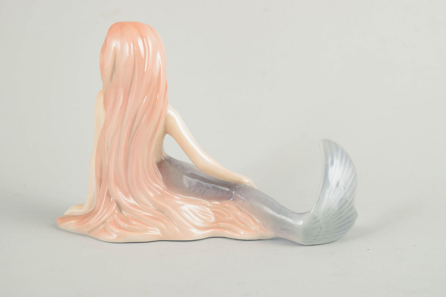Porcelain figurine depicting The Little Mermaid, produced for the H.C. Andersen Collection. The figure is modelled in a reclining pose with a finely detailed blue-toned tail and long hair in soft pink hues. The underside is marked The Little Mermaid, No. 072/2500, indicating a limited edition.