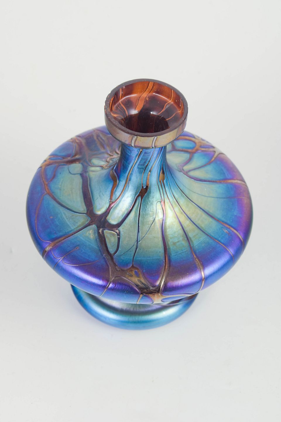 Johann Lötz Witwe was among the most important makers of Art Nouveau art glass in Bohemia around 1900. The workshop is particularly recognised for sophisticated iridescent finishes and organic decorative effects that exploit depth, light, and shifting colour. Vases from this period were often conceived as sculptural objects, where form and surface work together to create a distinctly period expression.