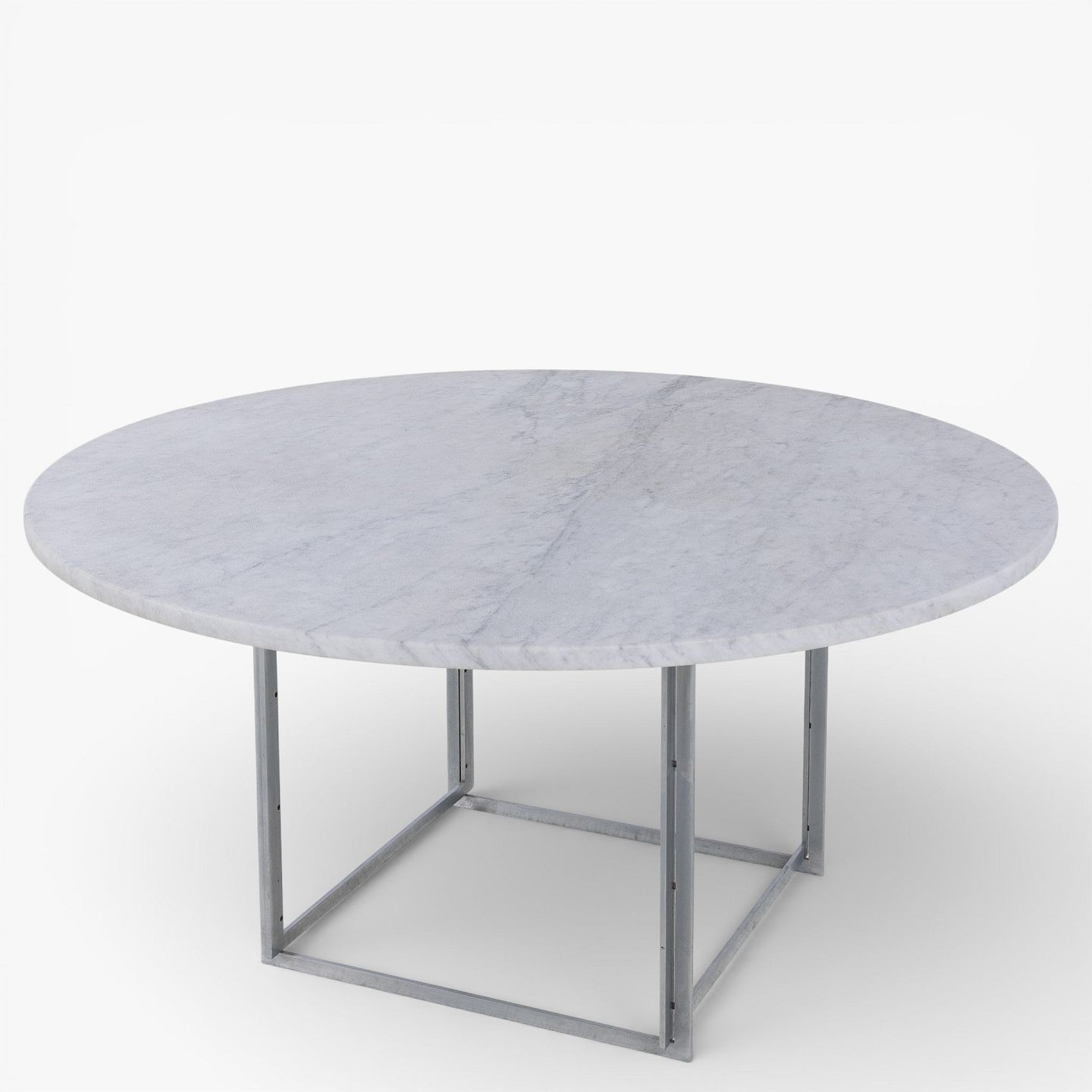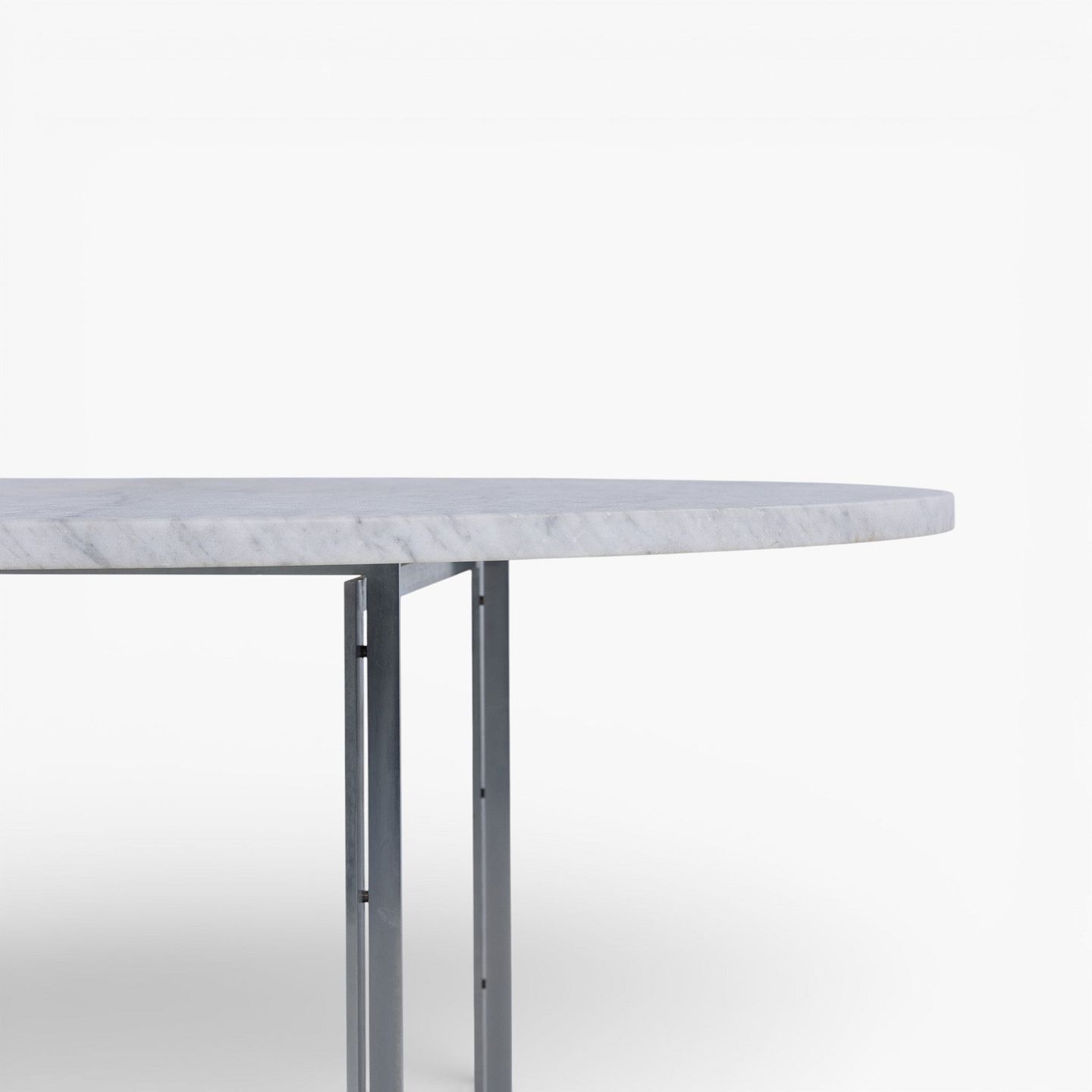 PK 54 - Round dining table with light flint-rolled marble top on a frame of matt chrome-plated steel. Designed in 1963.