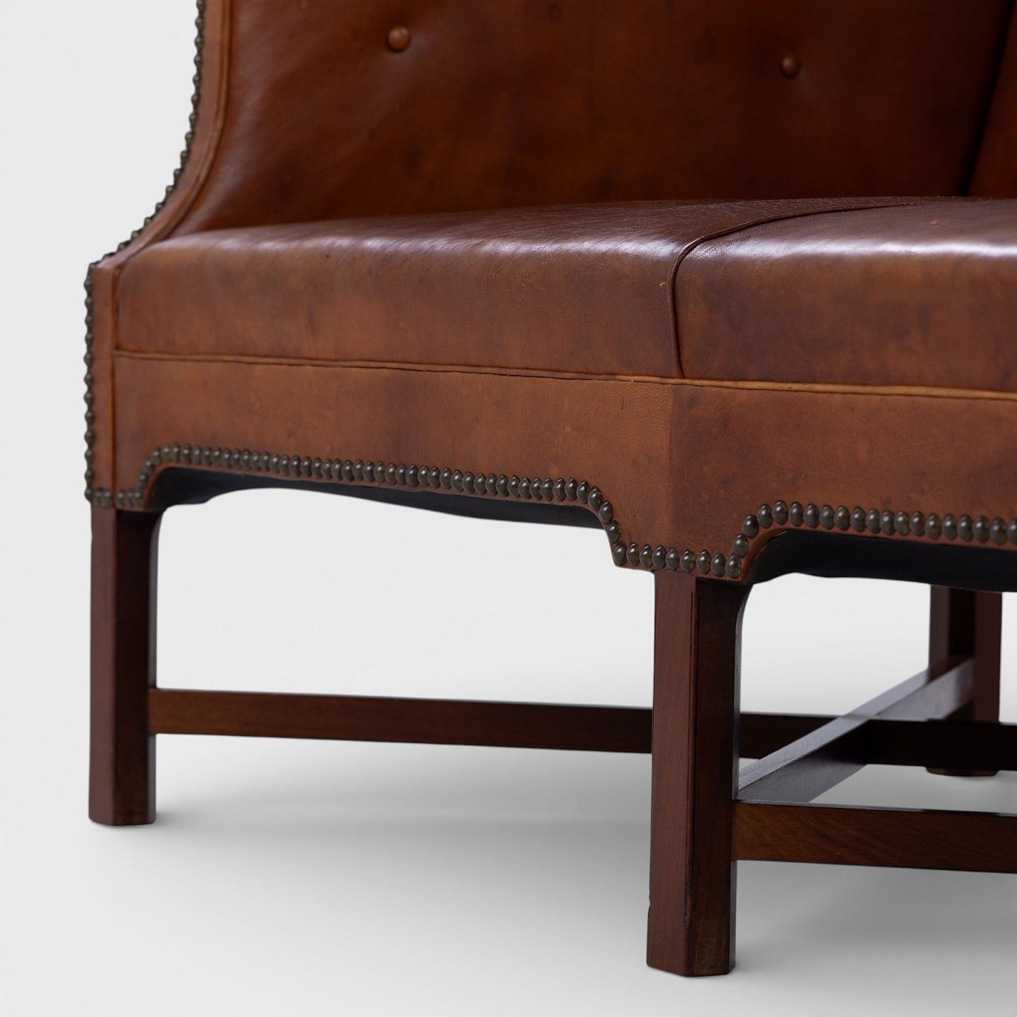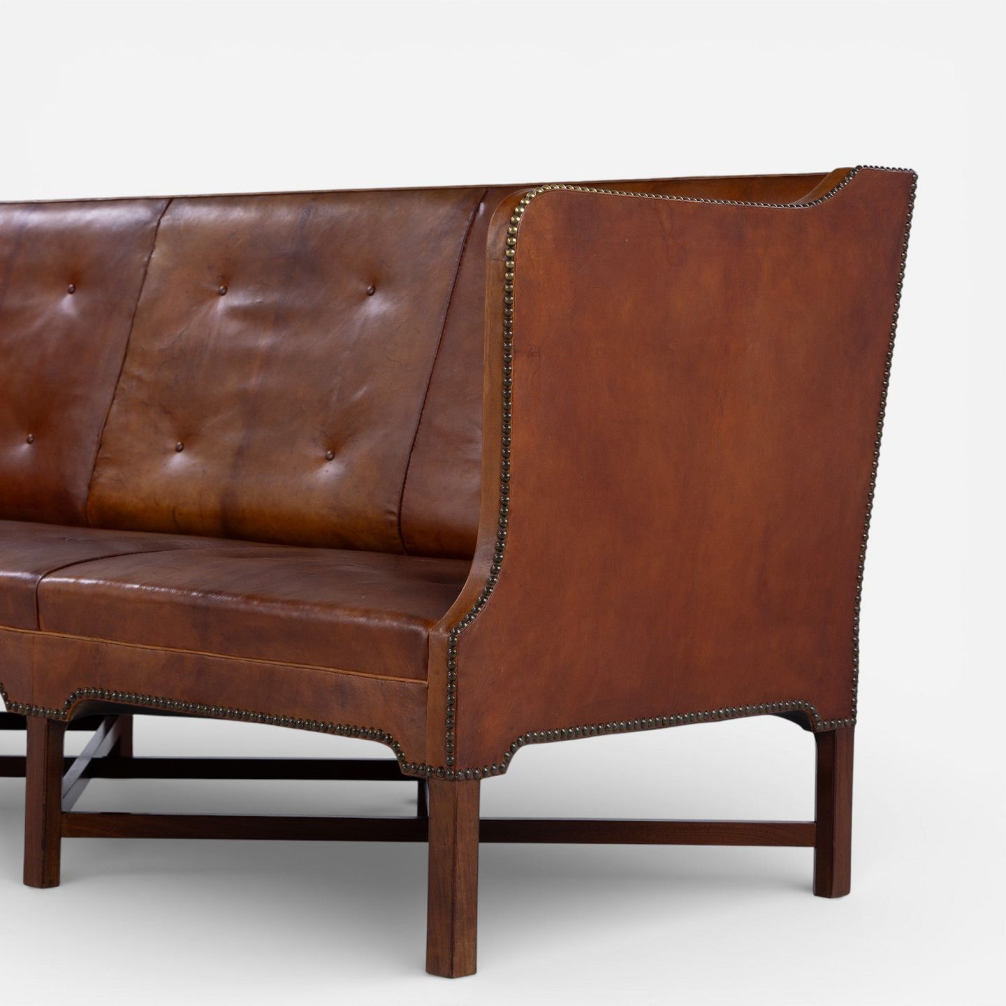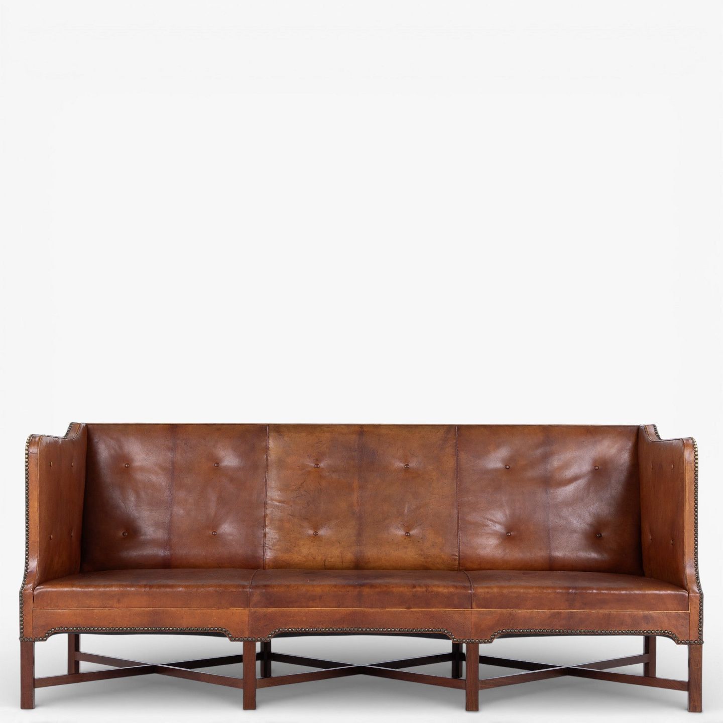 KK 4118 - 3-seater sofa in patinated niger leather on a cross-frame in Cuban mahogany. Designed in 1930.
