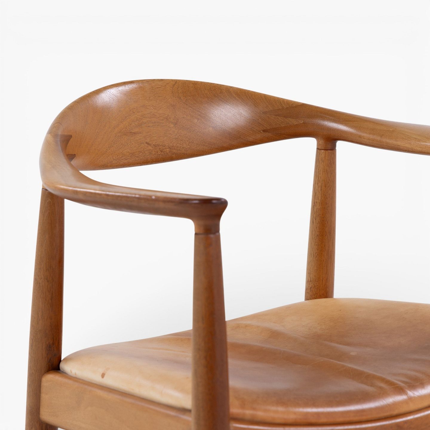 JH 503 - 'The Chair' armchair in mahogany with seat in patinated natural leather. Manufacturer's mark.