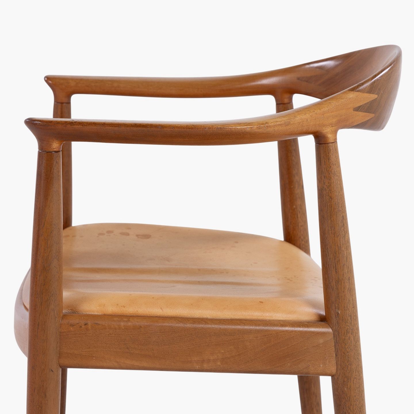 JH 503 - 'The Chair' armchair in mahogany with seat in patinated natural leather. Manufacturer's mark.