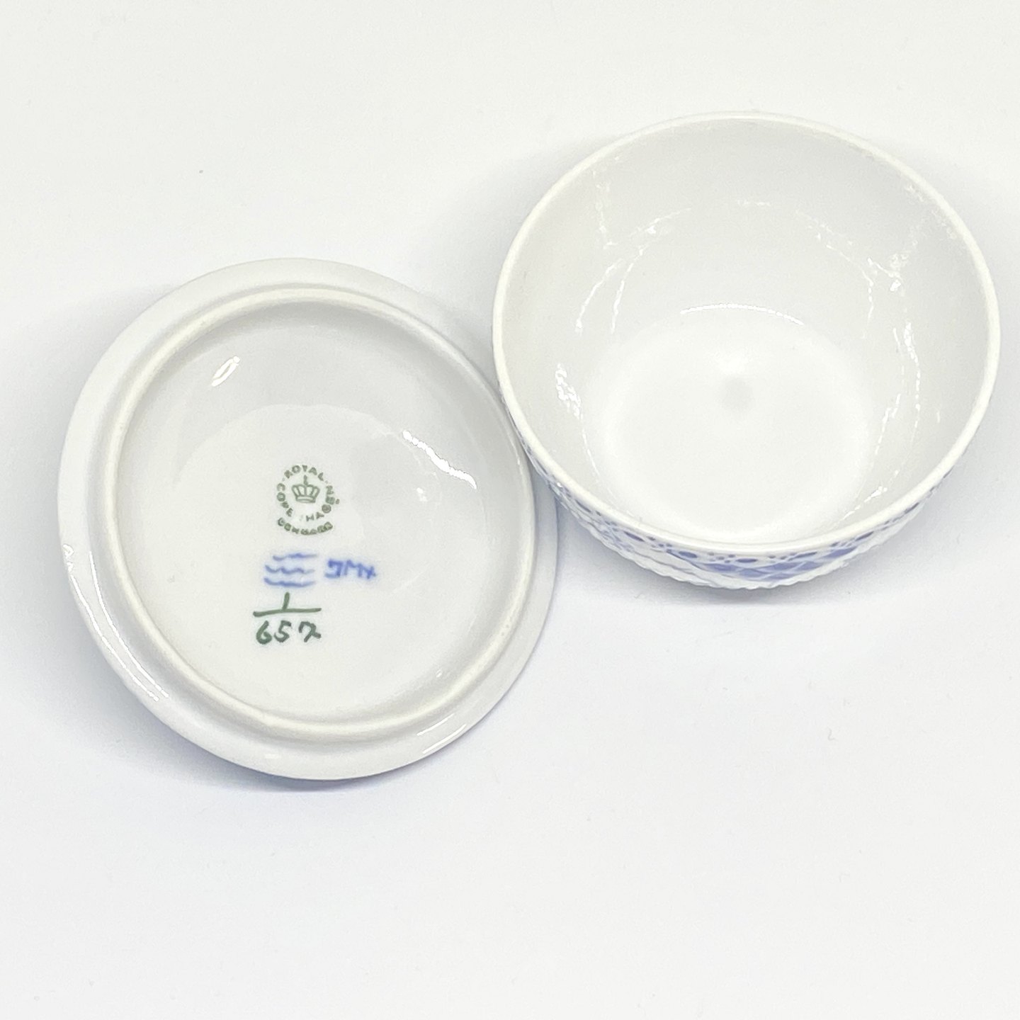 Royal Copenhagen/Kgl. Blue Fluted half lace. Small sugar bowl with lid. Decoration number 1/657. Bowl 2nd grade, lid 3rd grade. Dimensions: Ø 8.5 cm. H. 8 cm.