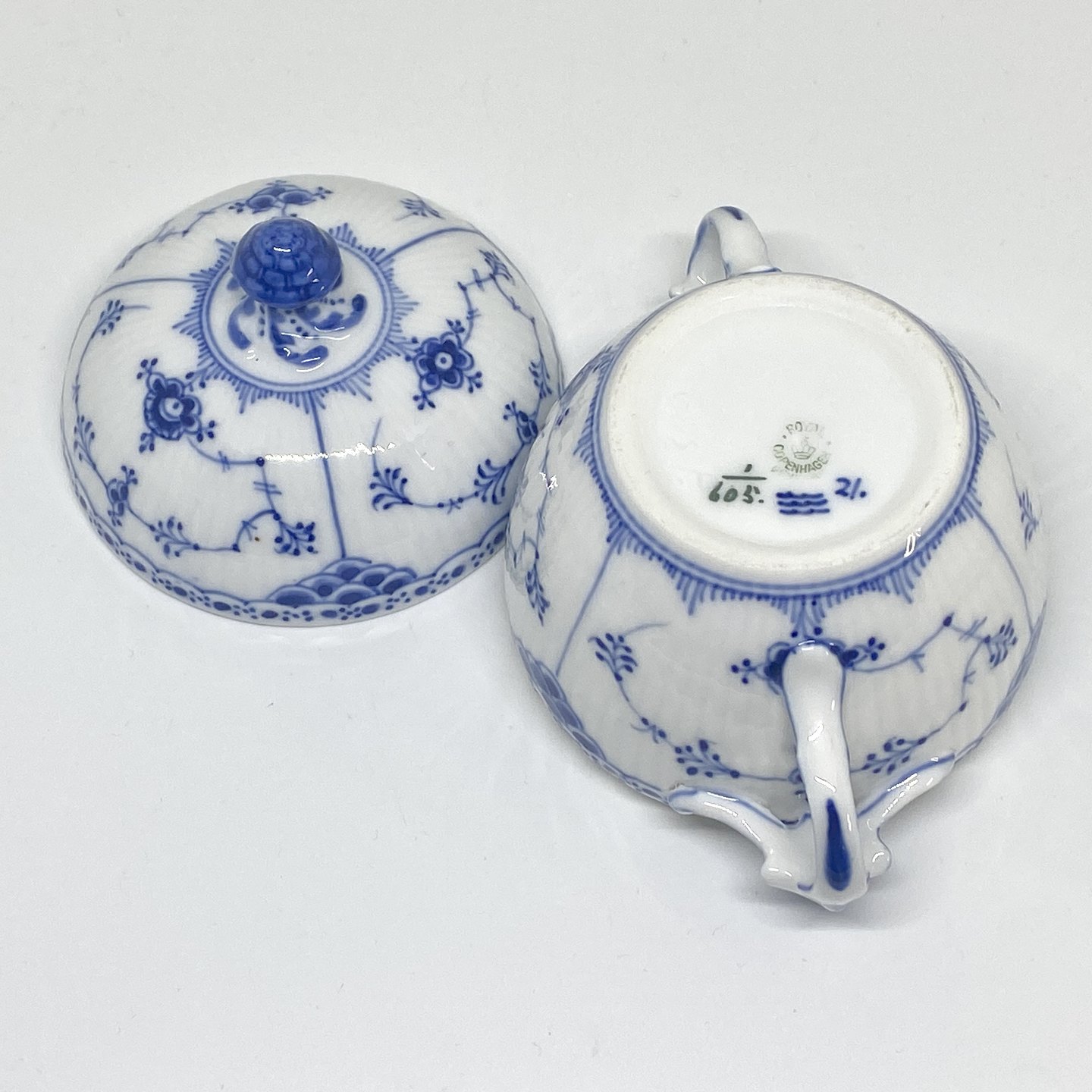 Royal Copenhagen/Kgl. Blue Fluted half lace. Sugar bowl with lid. Decoration number 1/6052 sorting. Dimensions: Ø 10 cm. H. 11 cm.