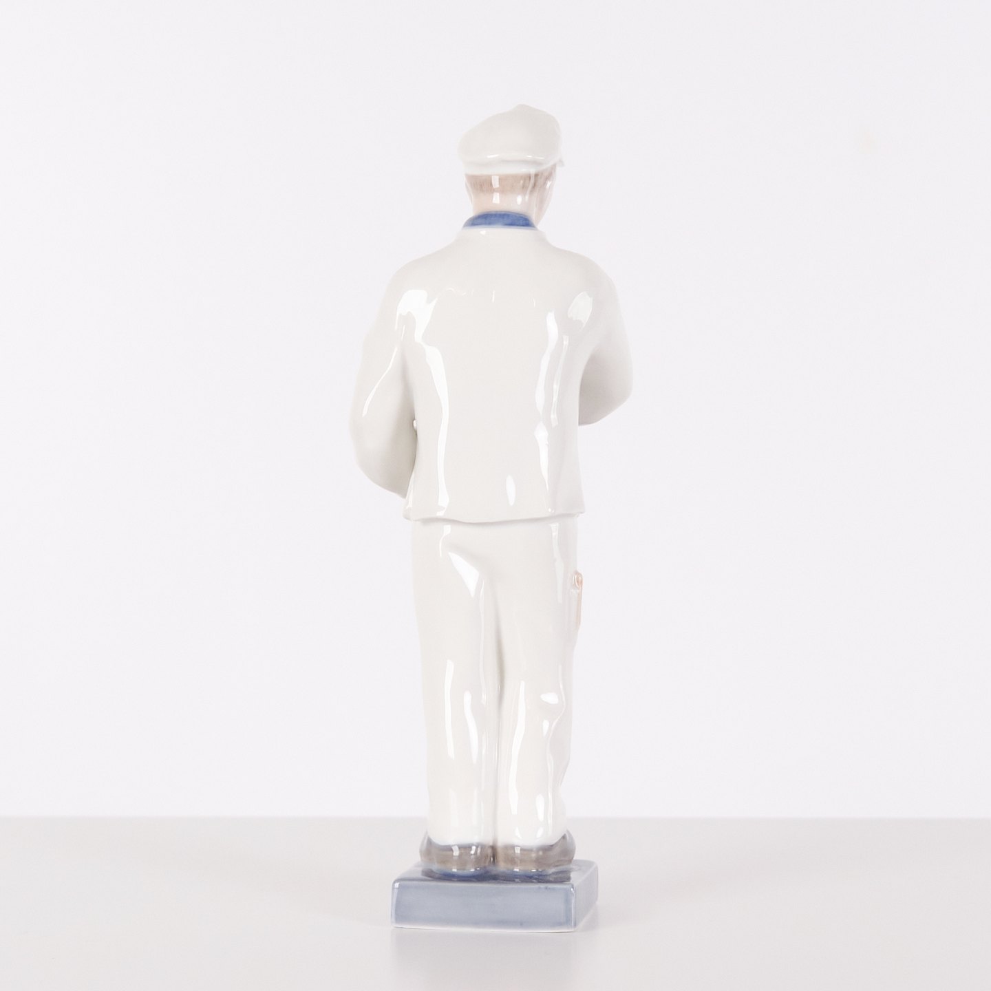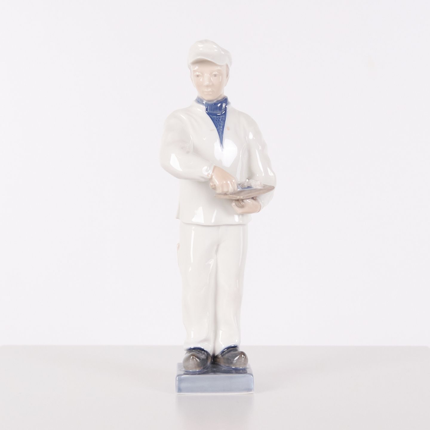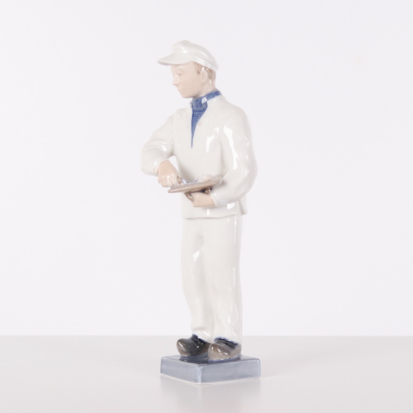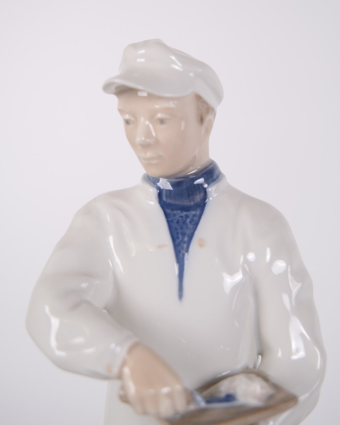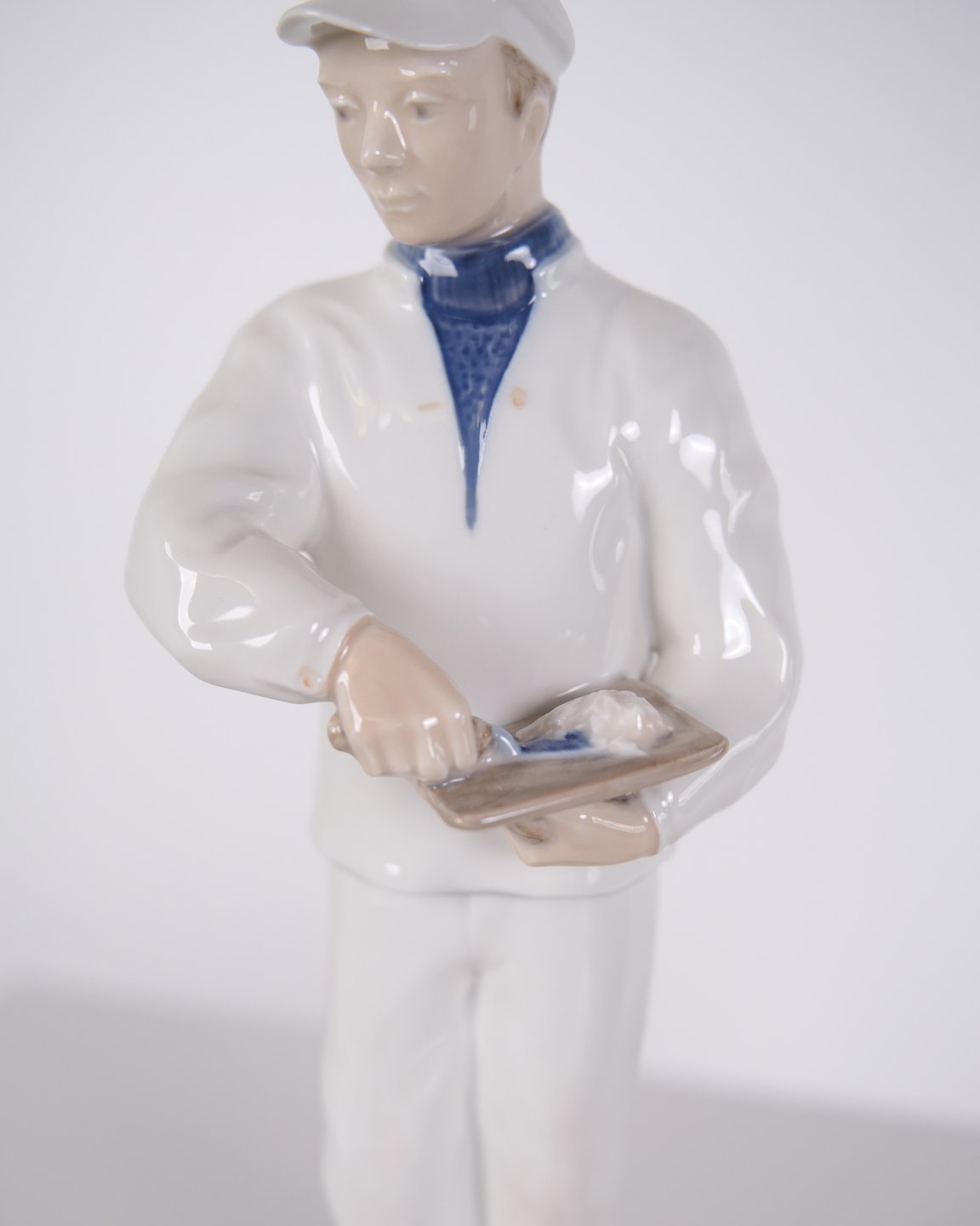 Royal mason figure, model 4377, designed by Johannes Hedegaard for Royal Copenhagen. The figure depicts a mason in work attire and is part of Royal Copenhagen’s figurine production, representing Danish ceramic figure design from the 20th century.