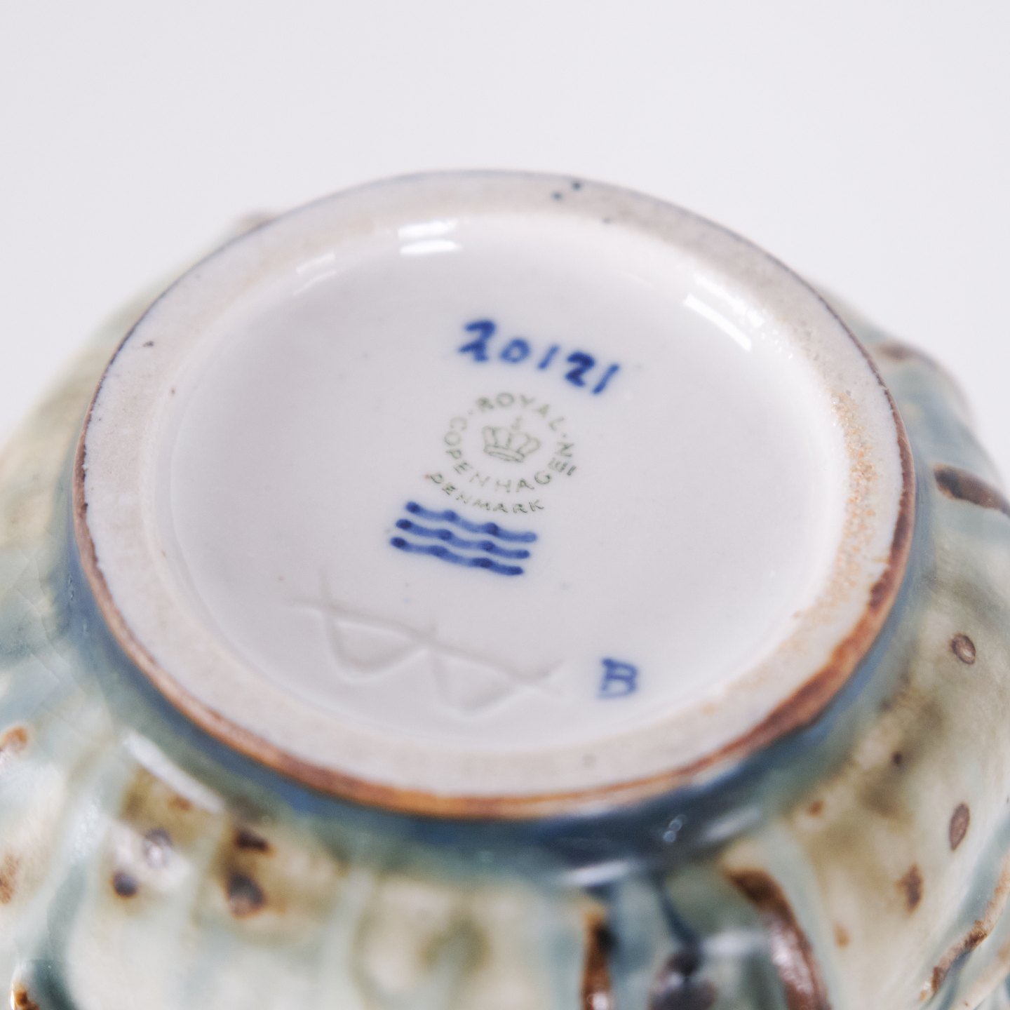 Stoneware vase designed by Bode Willumsen for Royal Copenhagen. The vase is modelled with relief decoration and was produced at Royal Copenhagen in Denmark between 1969 and 1973. Marked with monogram and model number 20121. An example of Danish ceramic design from the late 20th century.