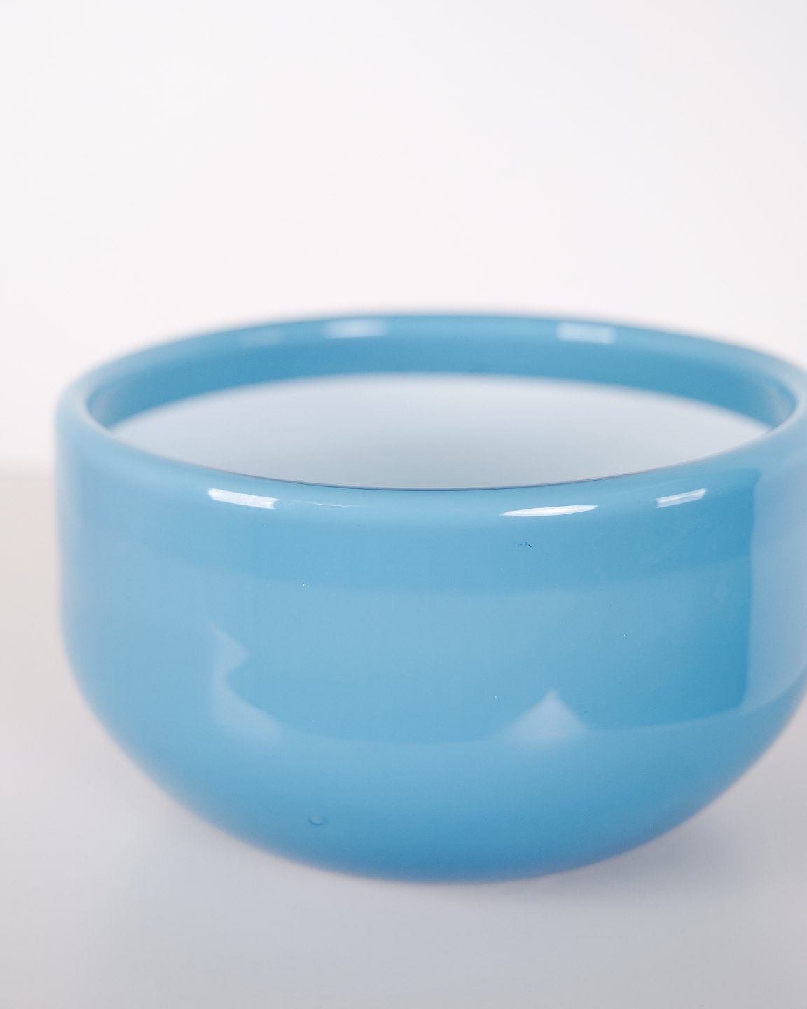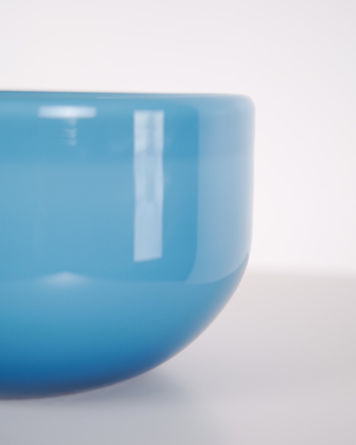 Glass bowl from the Palet series designed by Michael Bang for Holmegaard. The bowl is made of glass in a blue colour tone and is part of the Palet series, produced at Holmegaard in the second half of the 20th century. The series is known for its use of coloured glass within Danish glass design.