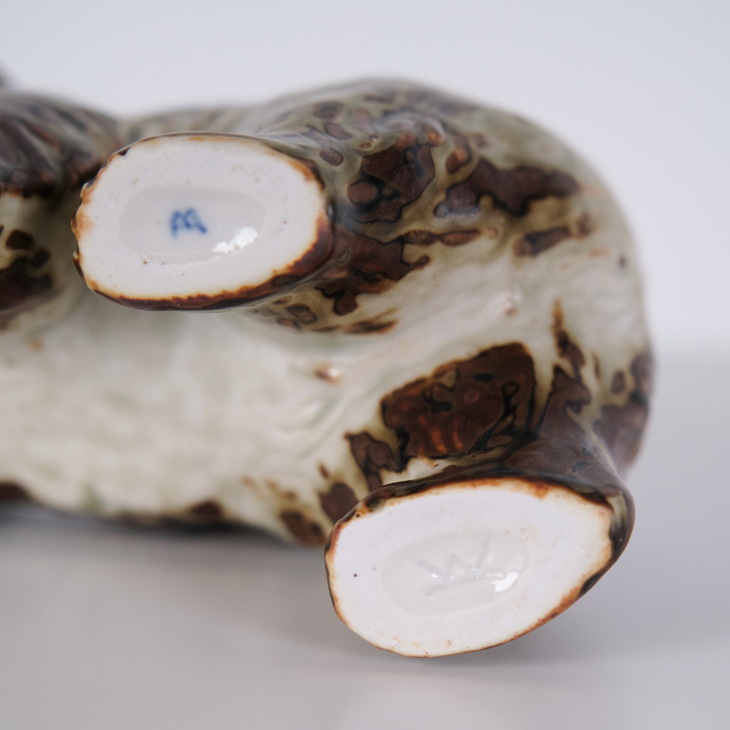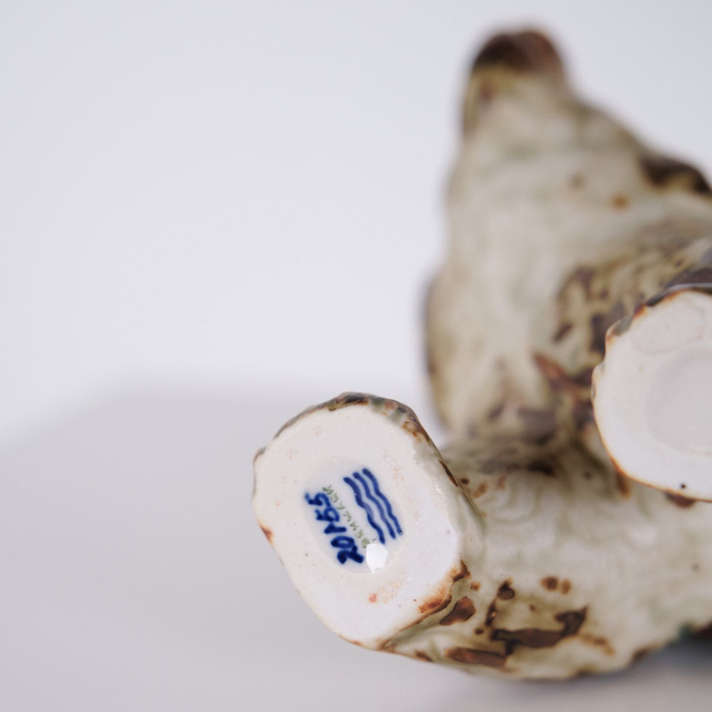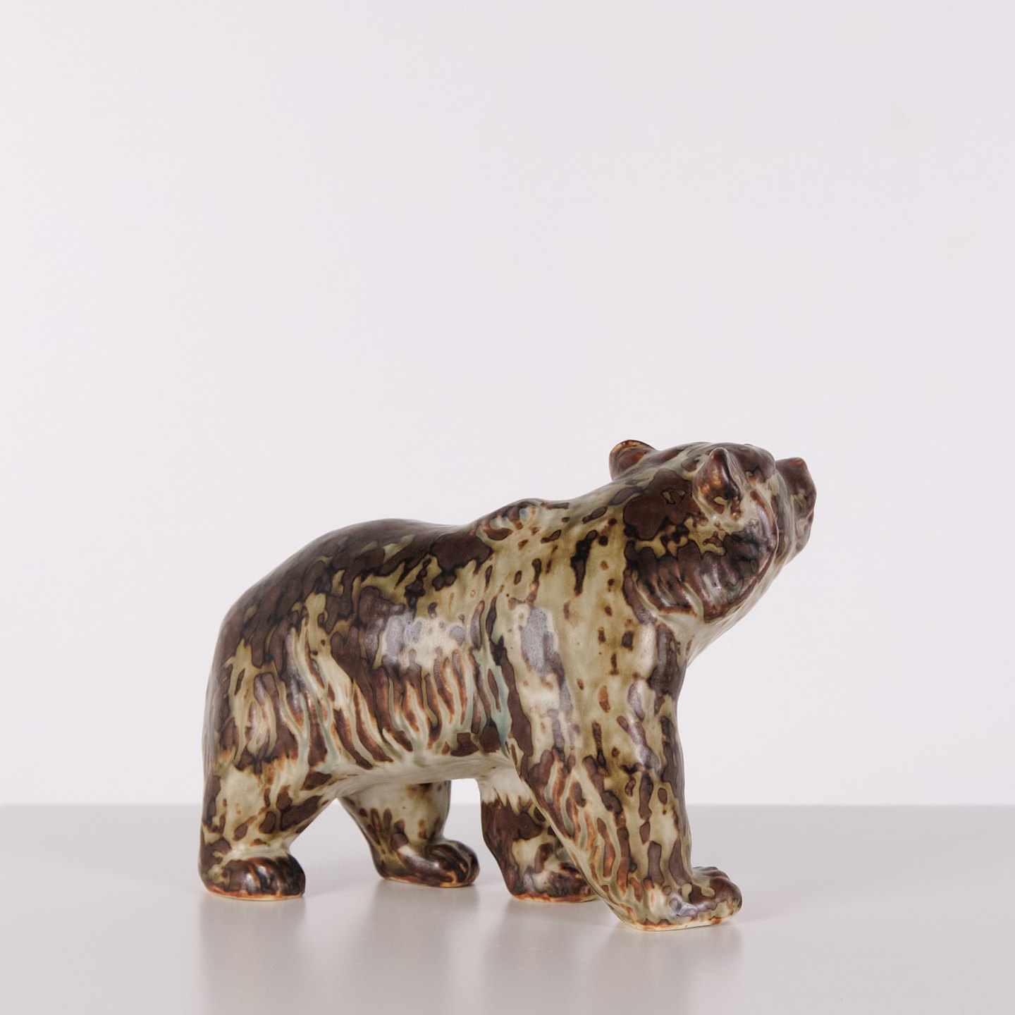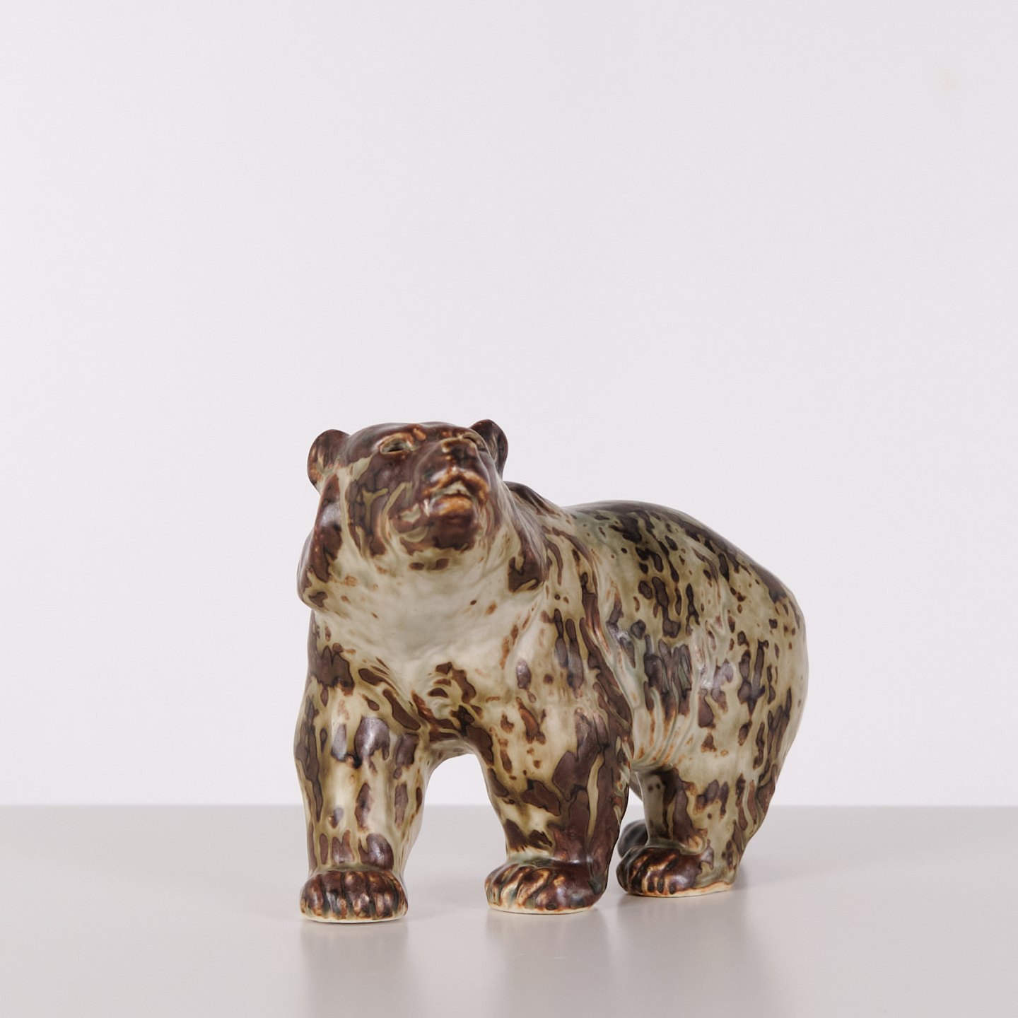 Ceramic figure depicting a bear, model 20155, designed by Knud Kyhn for Royal Copenhagen. Executed in stoneware and produced at Royal Copenhagen around 1960. The model is part of Kyhn’s animal sculptures and represents Danish ceramic design from the mid-20th century.